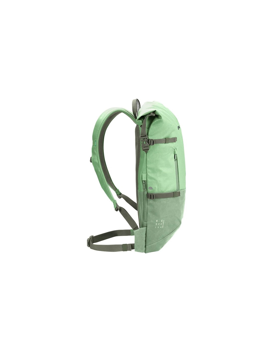 - Hlavní přihrádka s rolovacím uzávěrem a předním zipem.