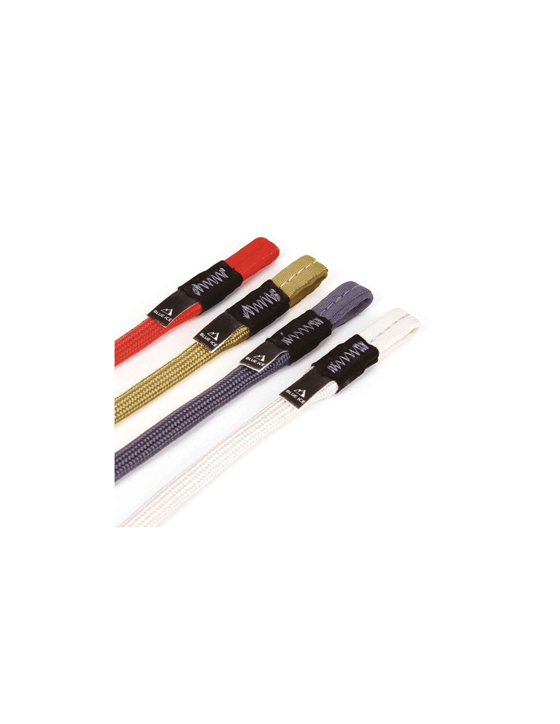 Jednopramenná smyčka odolná proti oděru a UV záření od značky Blue Ice s obaleným jádrem UHMWPE a pletenou vrstvou HTPE.