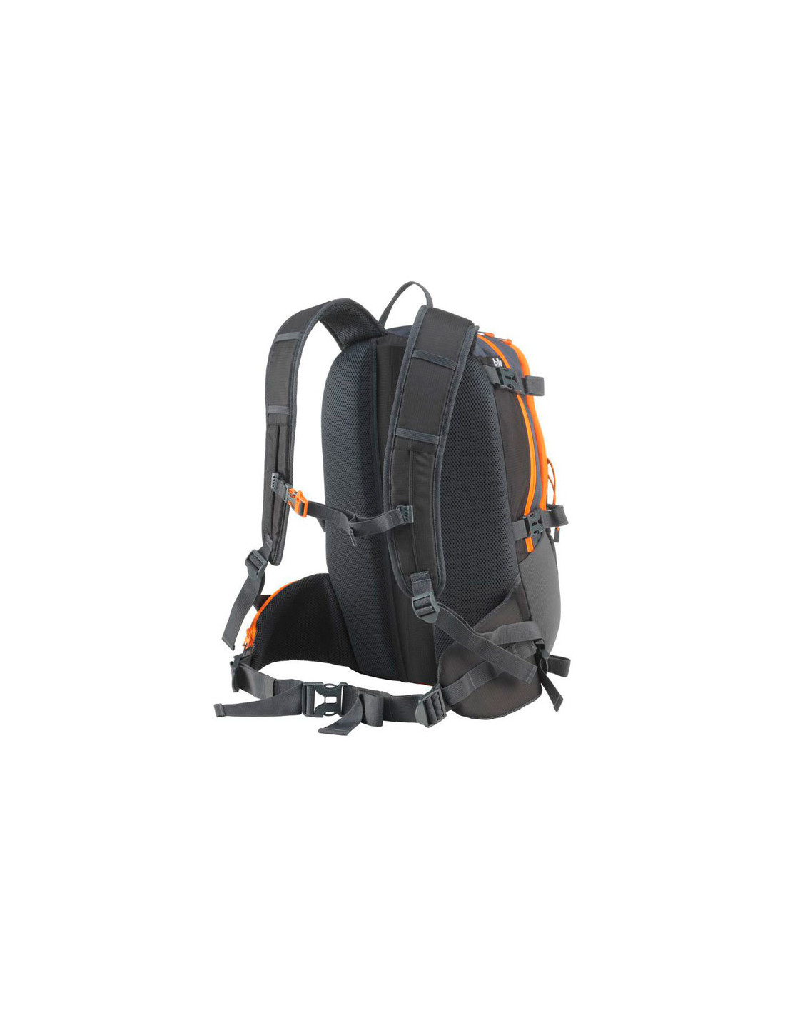 Jako extra vybavení má batoh háčky na trekové hole a pláštěnku. Najdeme ho v černé barvě s oranžovými detaily.