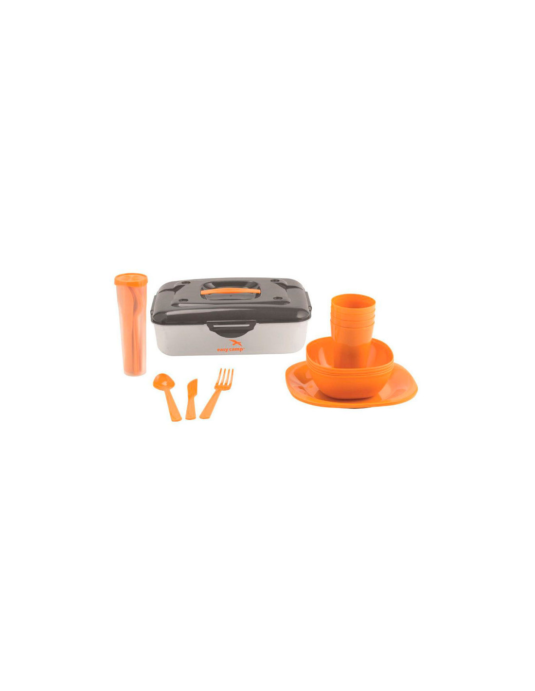 Easy Camp 24dílná sada nádobí a příborů, uložená ve vlastní krabičce s připínacím víkem a rukojetí.