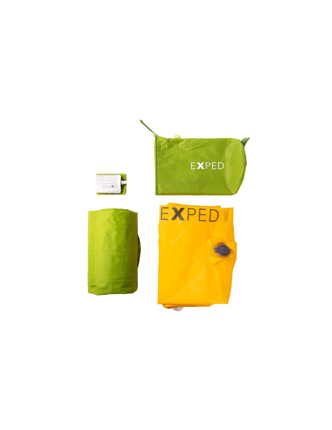 Lehká a kompaktní podložka na spaní Ultra obsahuje 20D recyklovanou ripstopovou skořepinu EXPED's Schnozzel Pumpbag: Rychlé nafouknutí podložky bez vlhkosti – není potřeba žádná podložka!