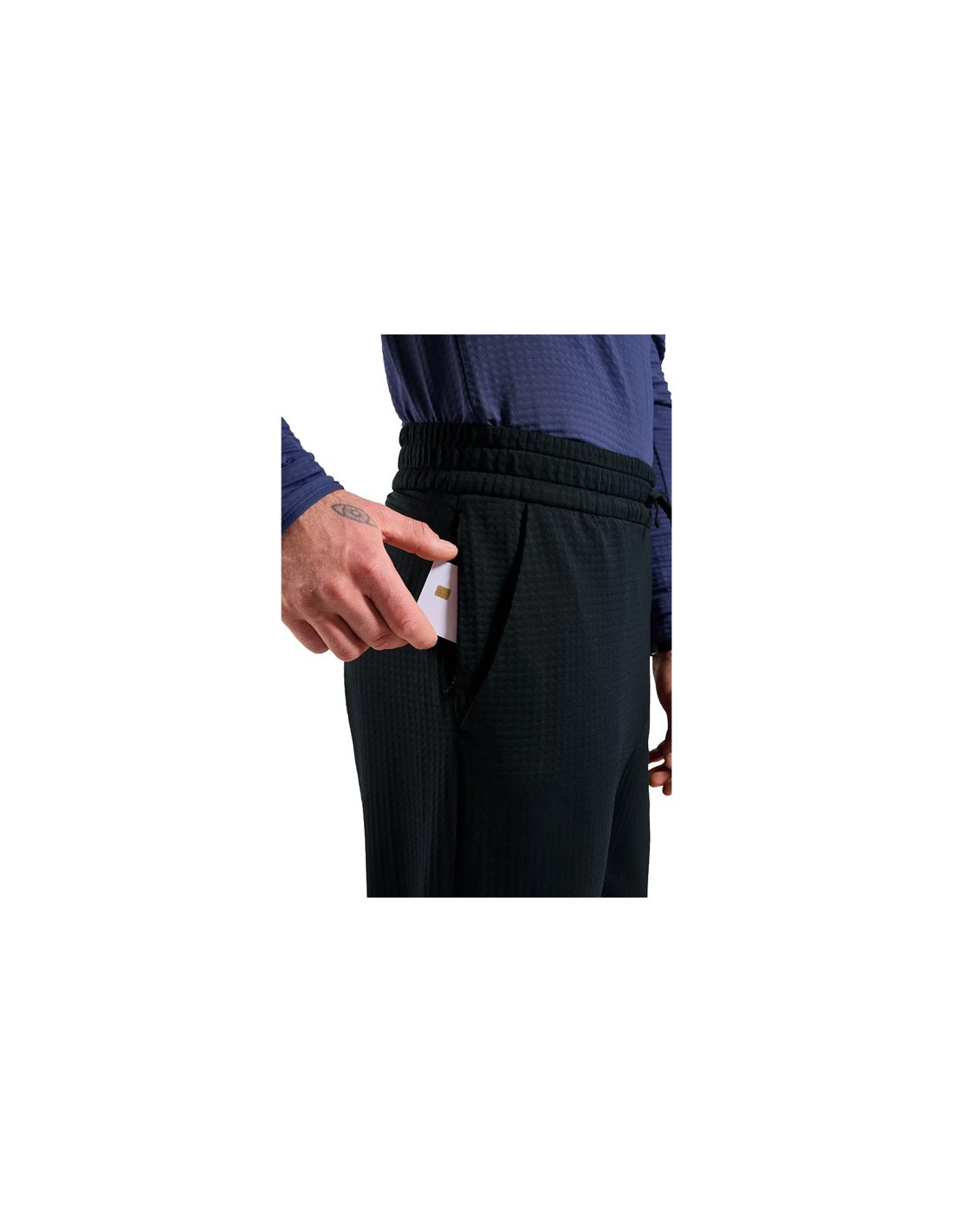 Má dvě kapsy na ruce, z nichž jedna obsahuje další bezpečnostní kapsu se skrytým zipem. Elastický pas spolu s integrovanou stahovací šňůrkou umožňuje personalizované a pohodlné nošení během aktivit.