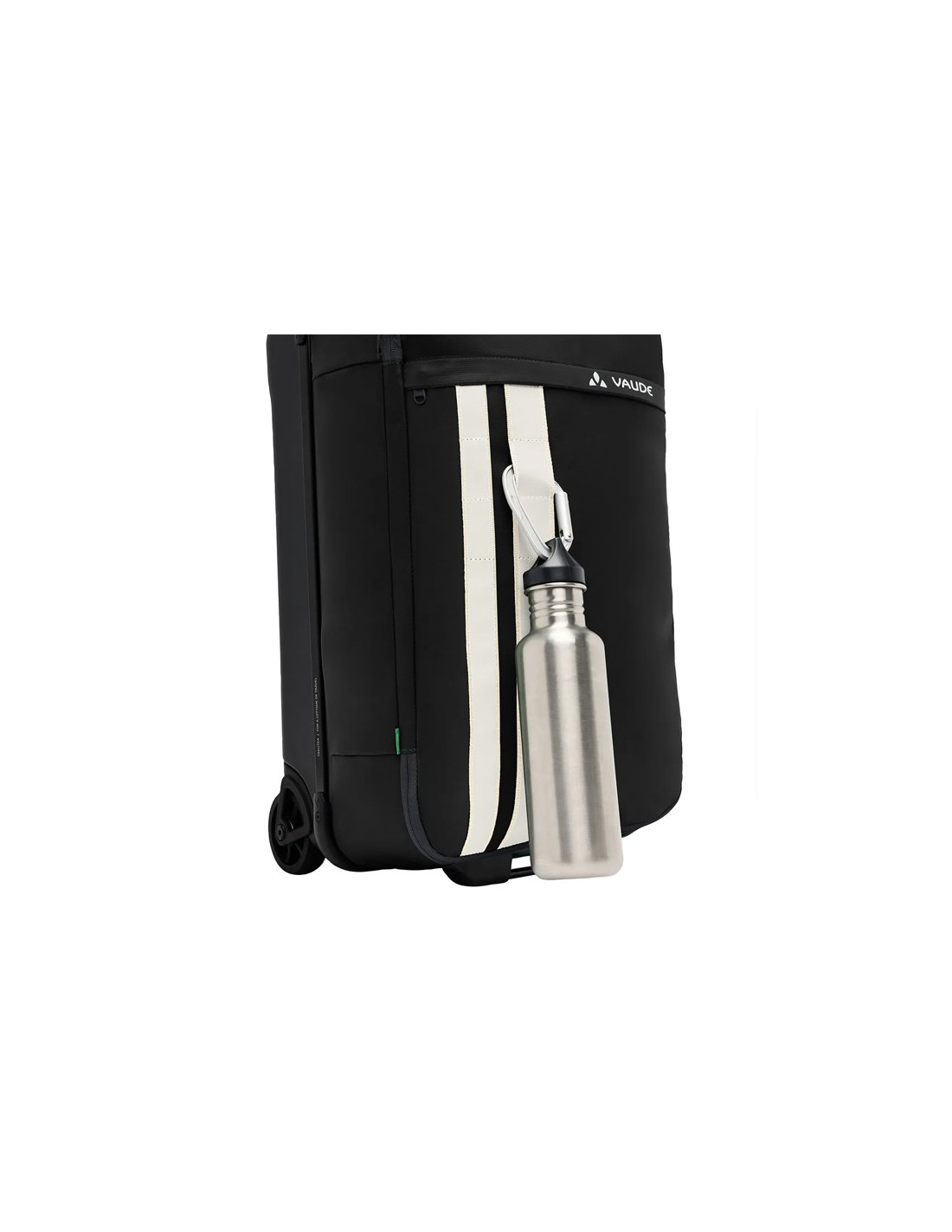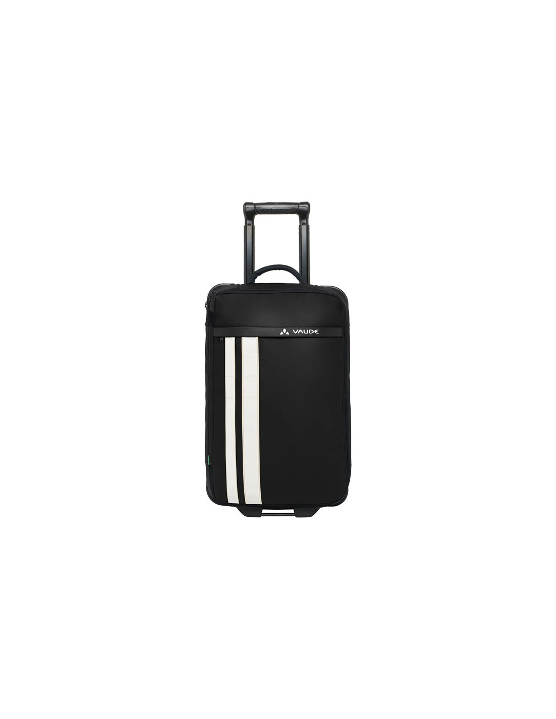 Má polstrovaná ucha na krátké i dlouhé straně pro pohodlnou přepravu v různých polohách. Kromě toho má tichá gumová kolečka a výsuvnou teleskopickou rukojeť pro snadný pohyb na velké vzdálenosti. Dva reflexní pruhy VAUDE na přední straně zvyšují viditelnost za zhoršených světelných podmínek, zatímco praktické háčky na horní straně umožňují připevnit karabiny nebo boty.