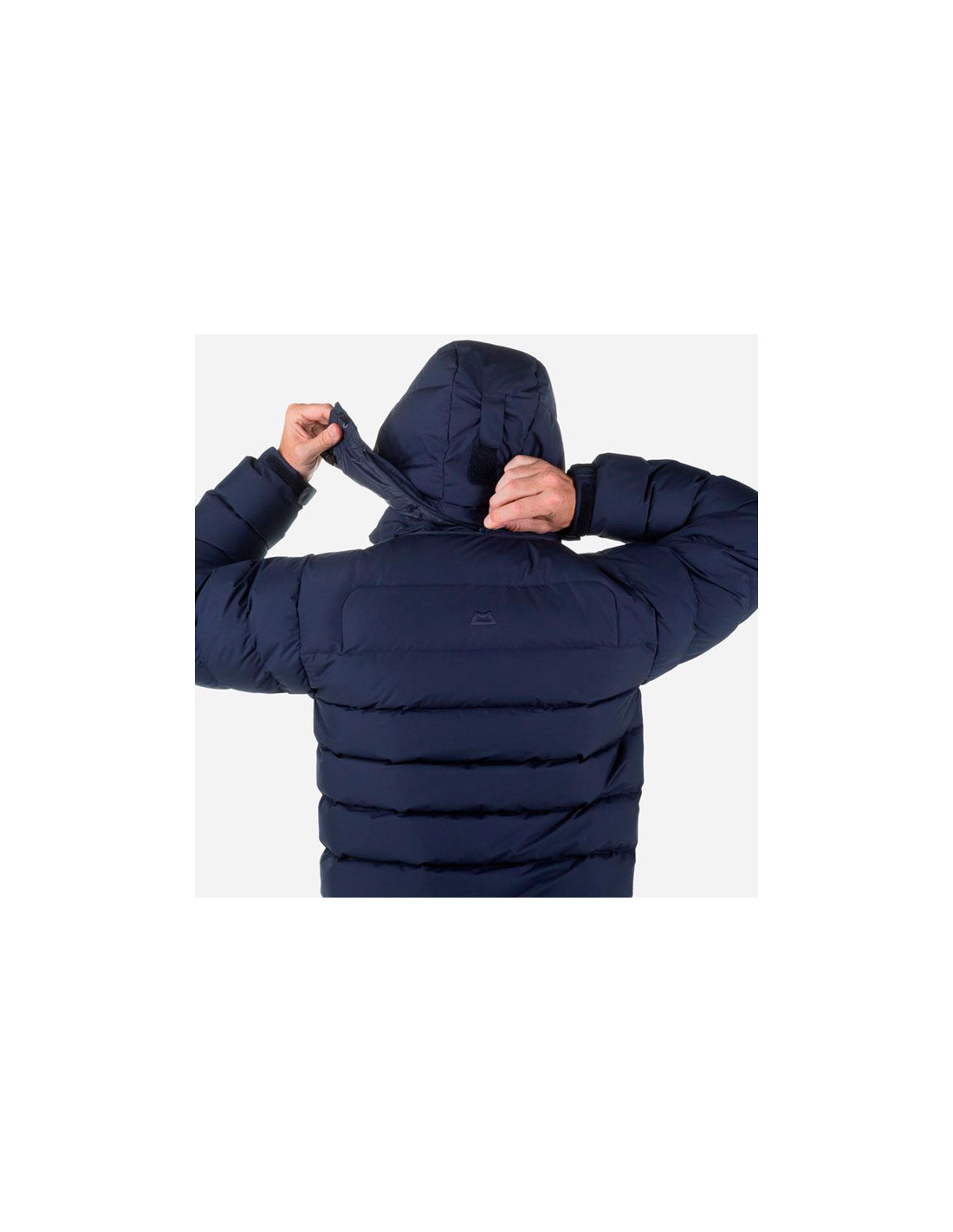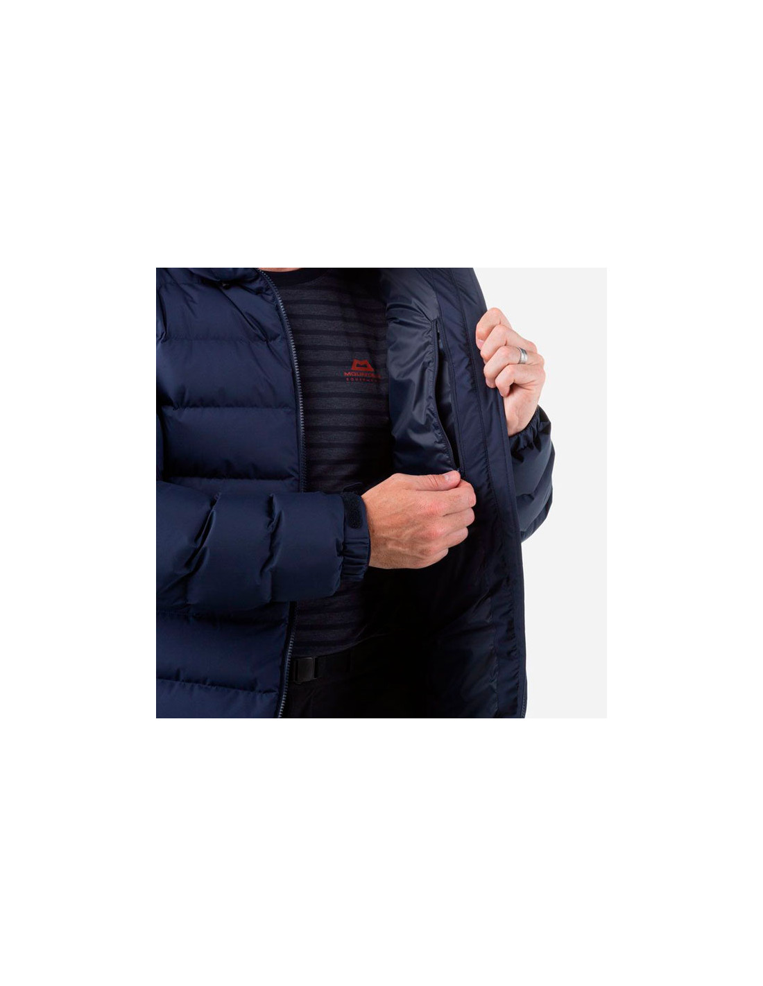 Péřová bunda od značky Mountain Equipment pro muže, vysoká izolační schopnost a udržitelně vyrobená z recyklovaných materiálů.