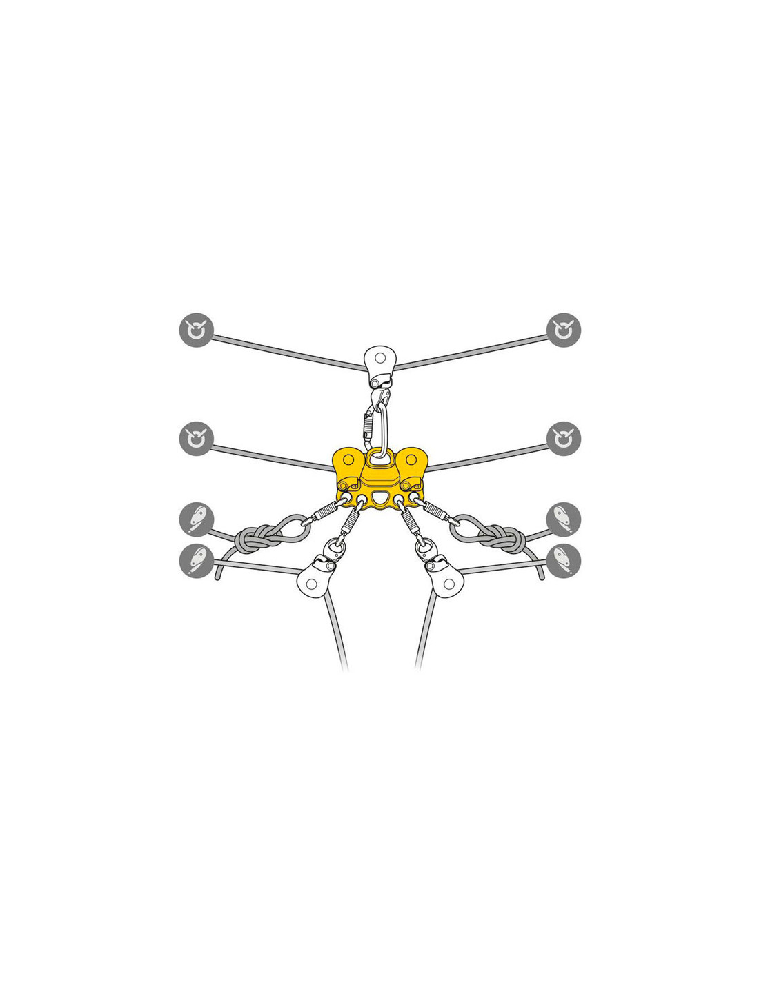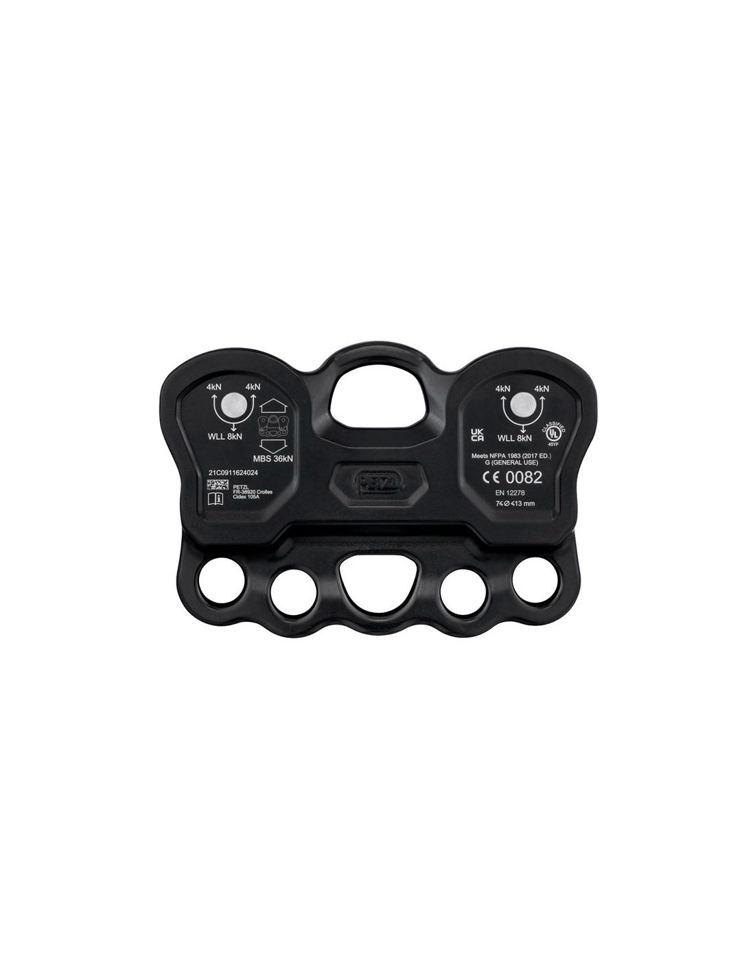 Jeho kompaktní formát omezuje počet použitých konektorů a výšku systému. Dvě kladky velkého průměru s utěsněnými kuličkovými ložisky poskytují vynikající výkon při pohybu. Vícenásobné spojovací otvory, kompatibilní s přímým průchodem lan, popruhů a karabin, umožňují lepší organizaci.