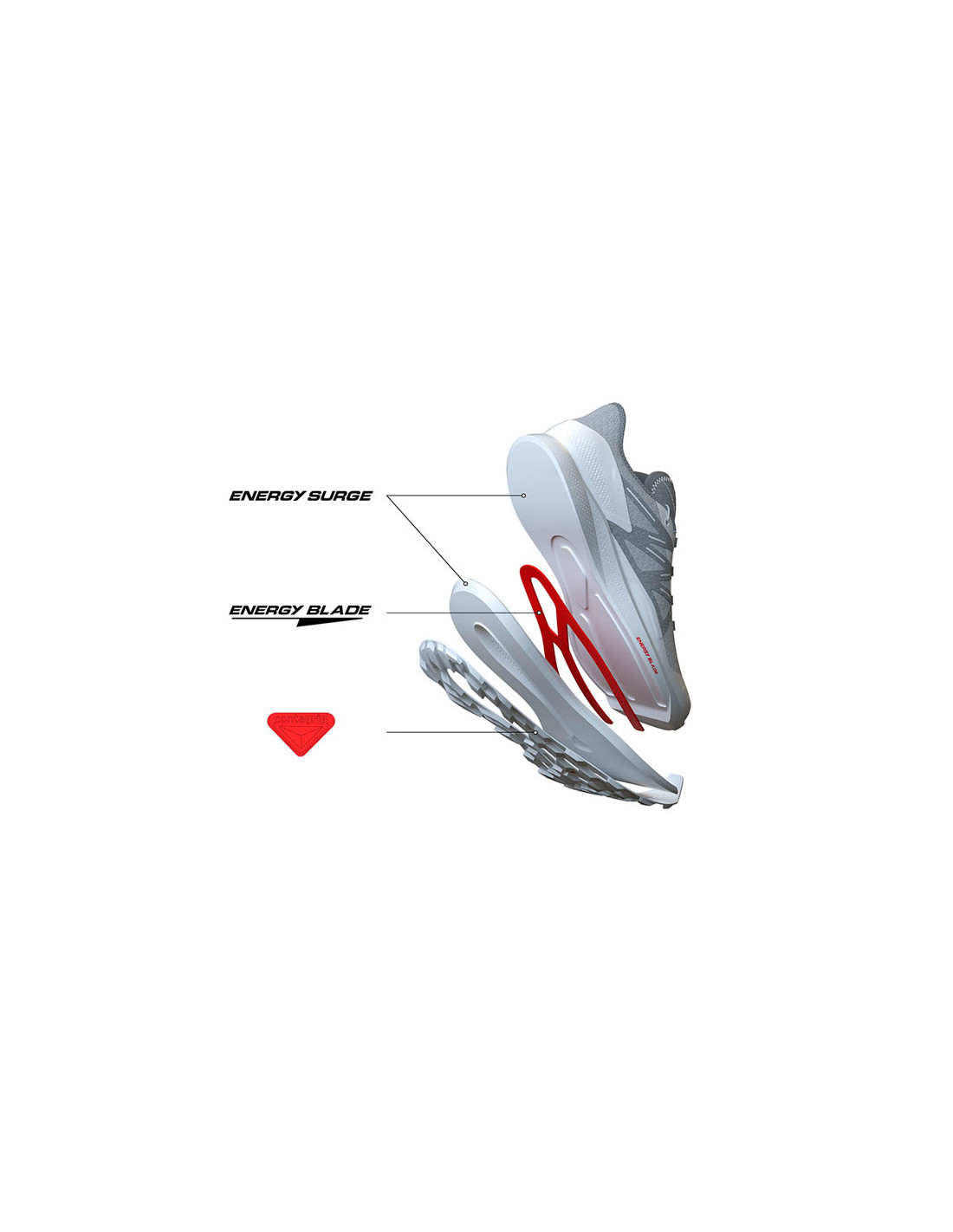 Jeho velkorysé 29 mm odpružení Energy Surge v přední části chodidla spolupracuje s Energy Blade, aby absorbovalo energii zátěže chodidla a vrátilo ji ke vzletu.