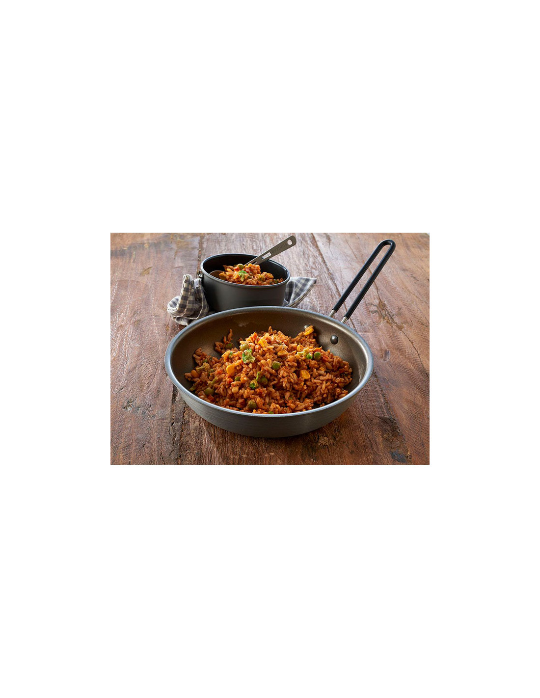 Lyofilizované jídlo Vegetable Jambalaya je založeno na dlouhozrnné rýži a je doma zejména v cajunské a kreolské kuchyni.