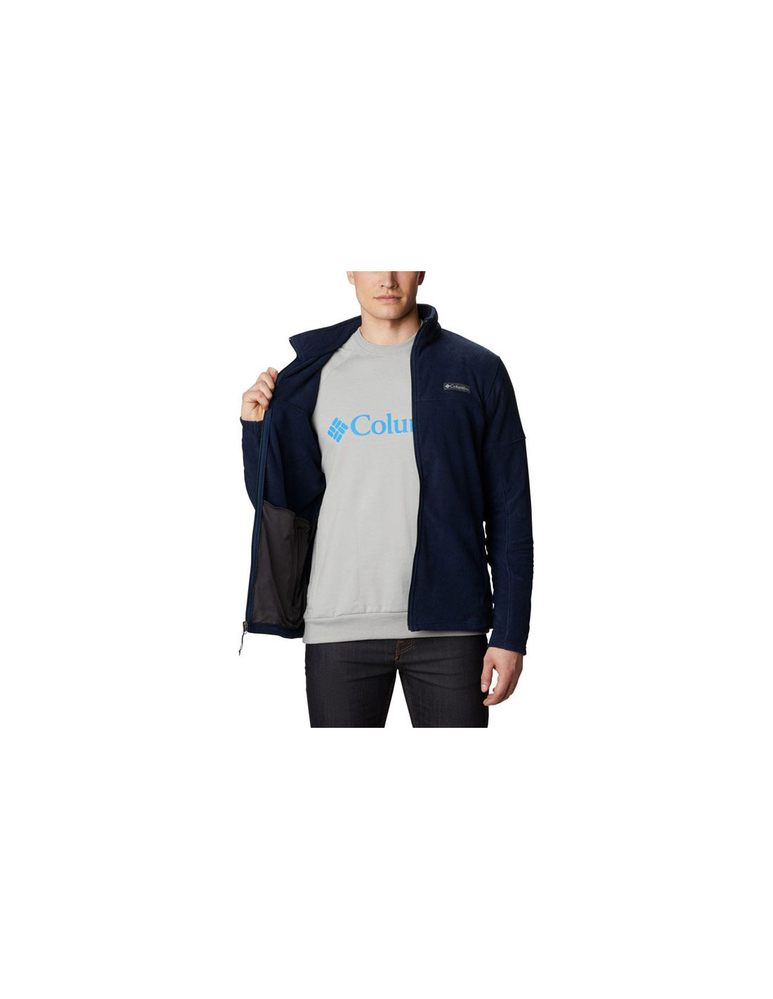 En blød, glat stofjakke fra mærket Columbia med lynlåslommer til dine småting.