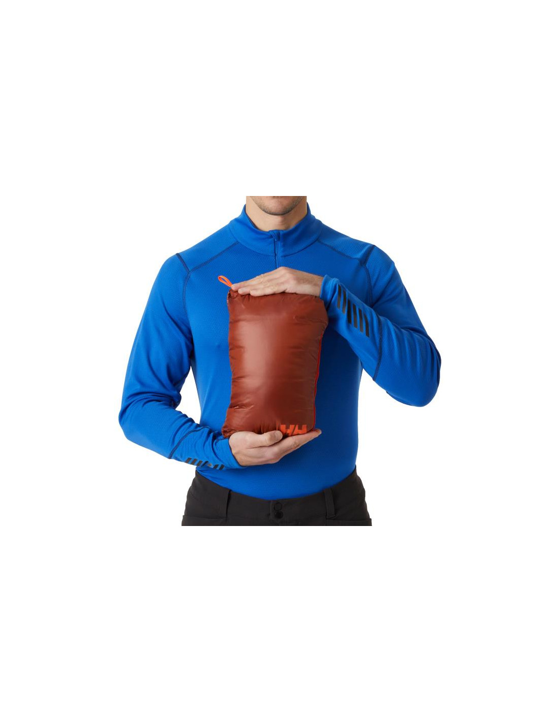 - Lomme til opbevaring af den pakkede jakke.