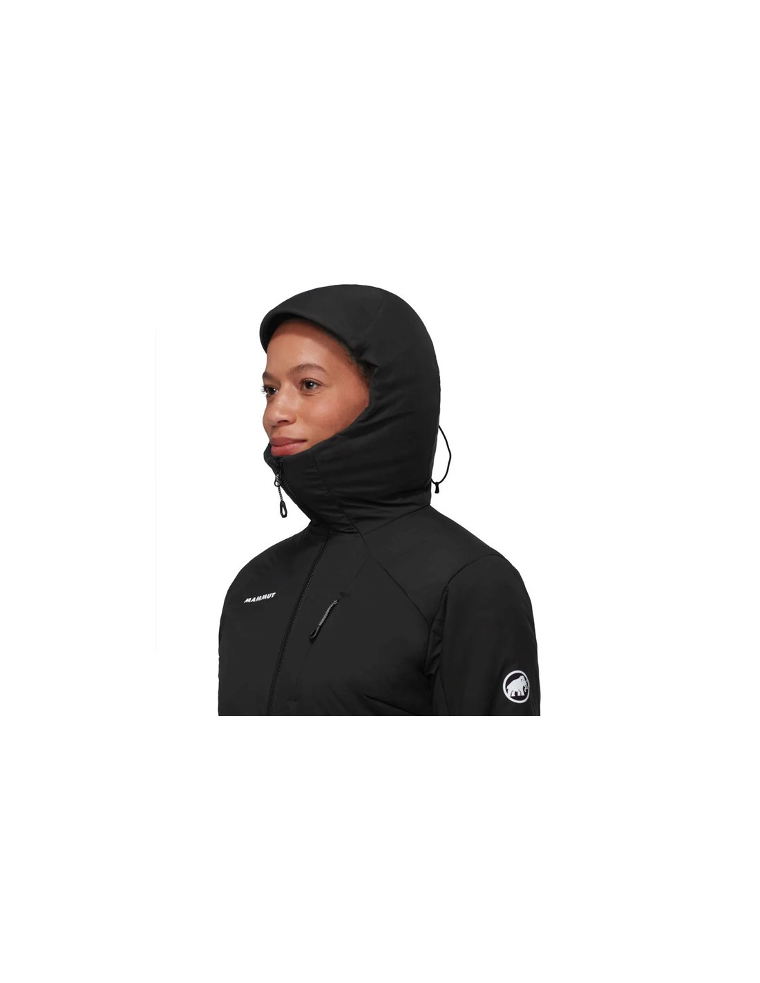 - Mammut LOOPINSULATION termisk isolering (80 g/m² krop, 60 g/m² justerbar hætte, 60 g/m²). hætte er lynlås foran.