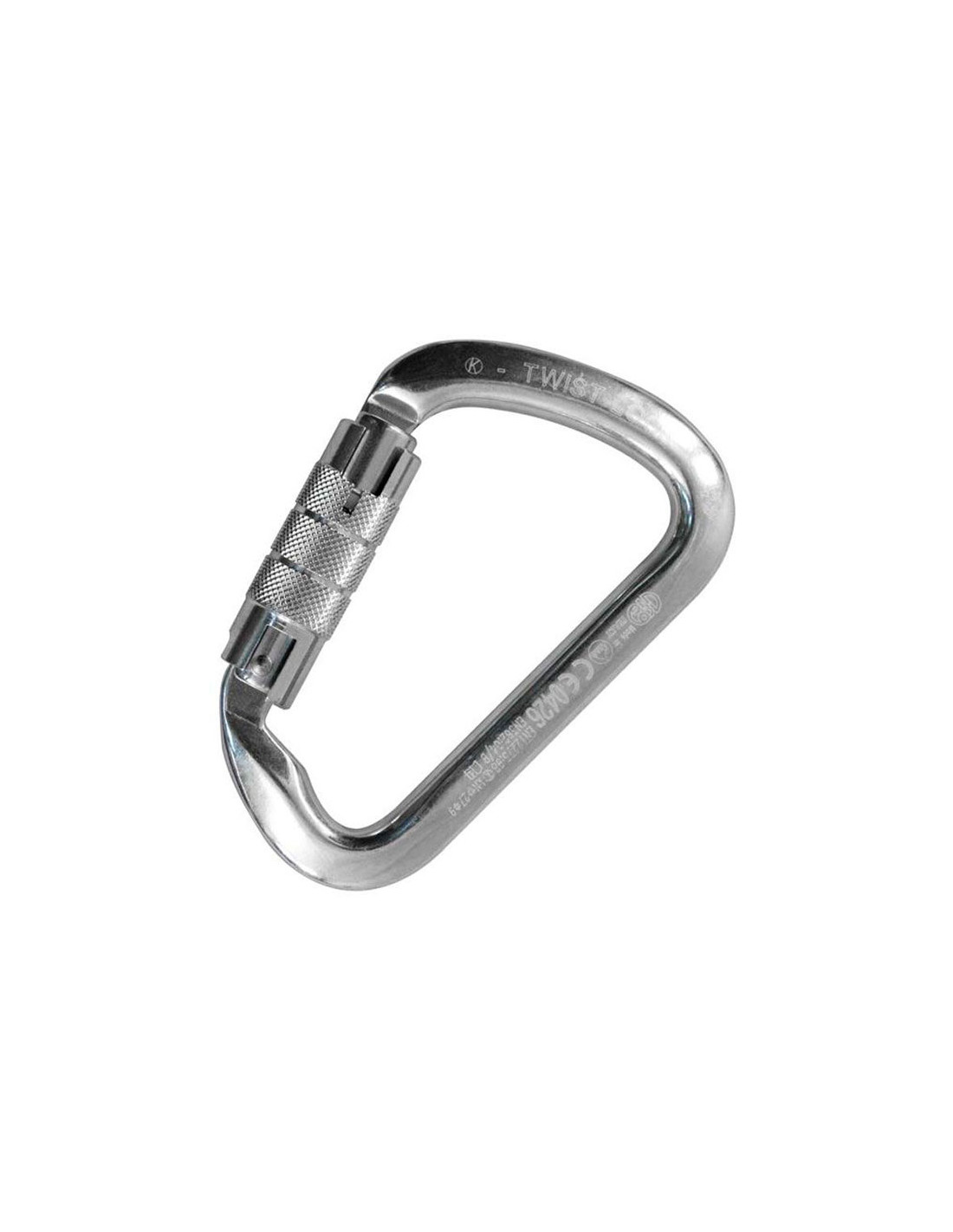 Den specielle D -form forhindrer rotation af karabinhagen og gør det muligt at fordele belastningen langs hovedaksen. Udstyret med et Nøglelås-system, der forhindrer, at det hænger sammen med rebet og udløbet. Udstyret med Twist Lock, nem at bruge selv med handsker. Den tilføjer også en 2-bevægelses lås for at åbne den, bare drej den og træk aftrækkeren.