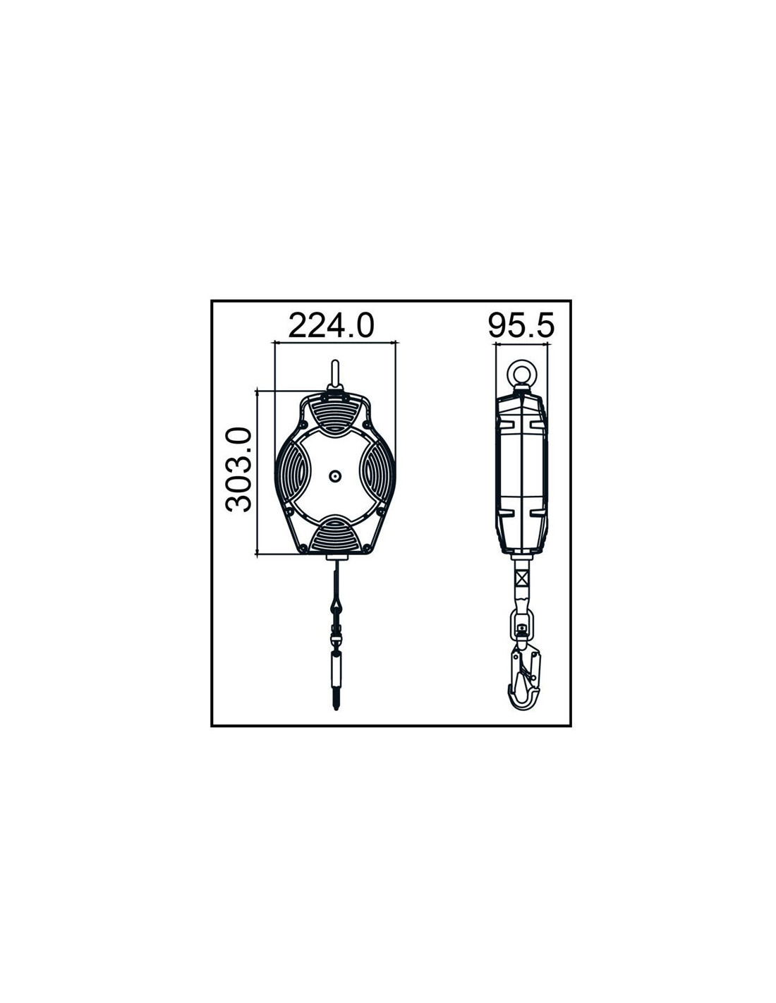 - Stålstik med automatisk lås, roterende og med faldindikator, til tilslutning til brugerens sele. 21 mm åbning.
