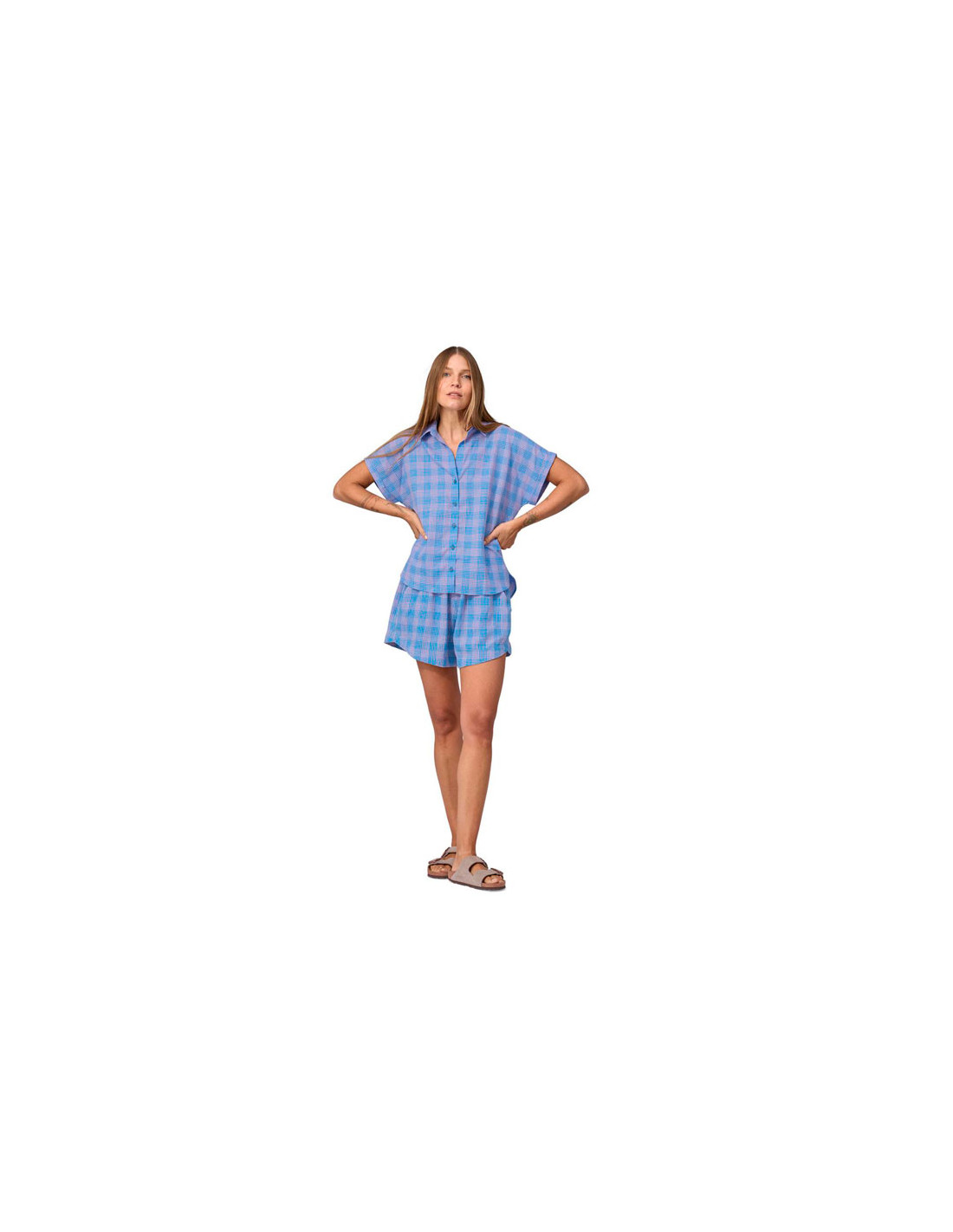 Lavet af en ultralet blanding af 95% økologisk bomuld og 5% hamp, denne crepevævede skjorte har en let hævet tekstur for at holde stoffet adskilt fra huden. Ultralet økologisk bomulds crepevævet stof har et strejf af hamp og en åndbar hørlignende tekstur.
