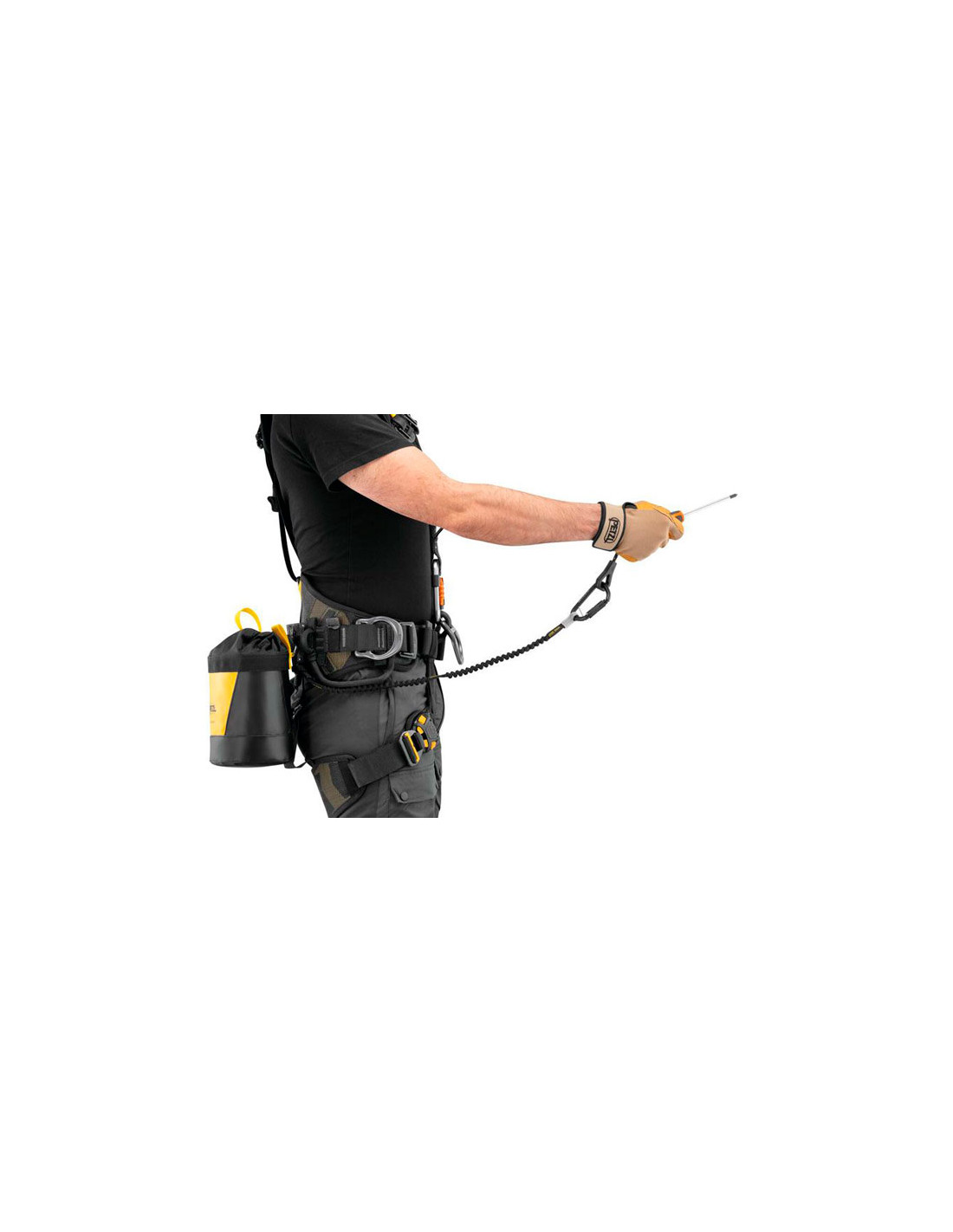 - Ergonomisk tilslutningspunkt, der tillader hurtig på- og afkrogning af karabinhage af TOOLEASH forlængerremskarabin.
