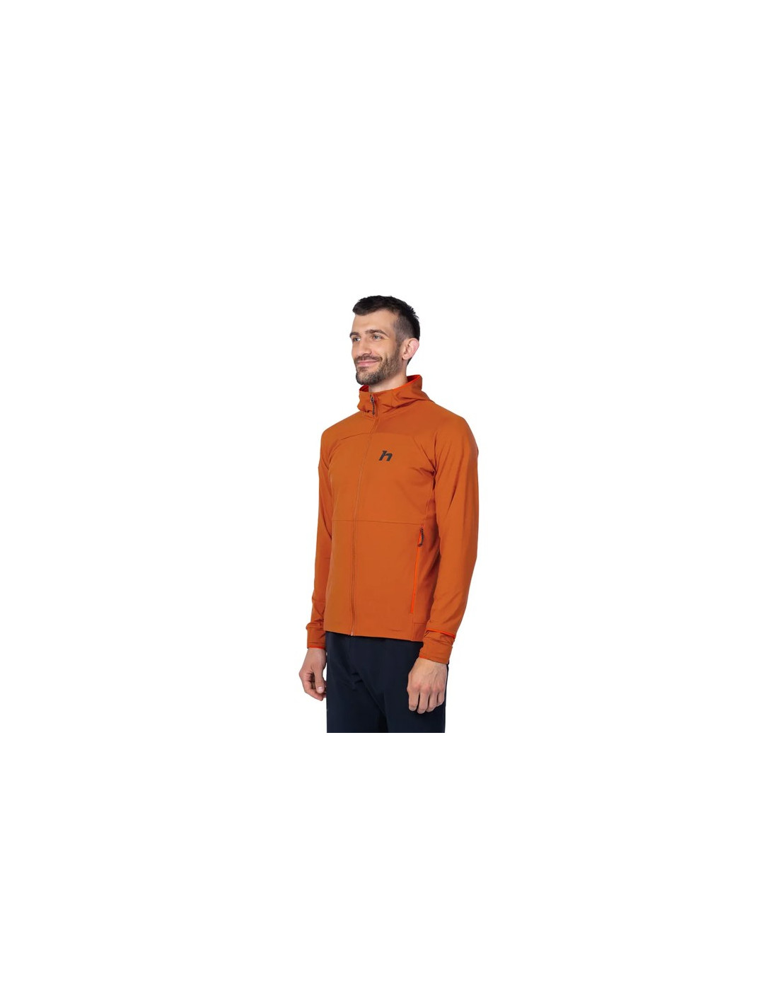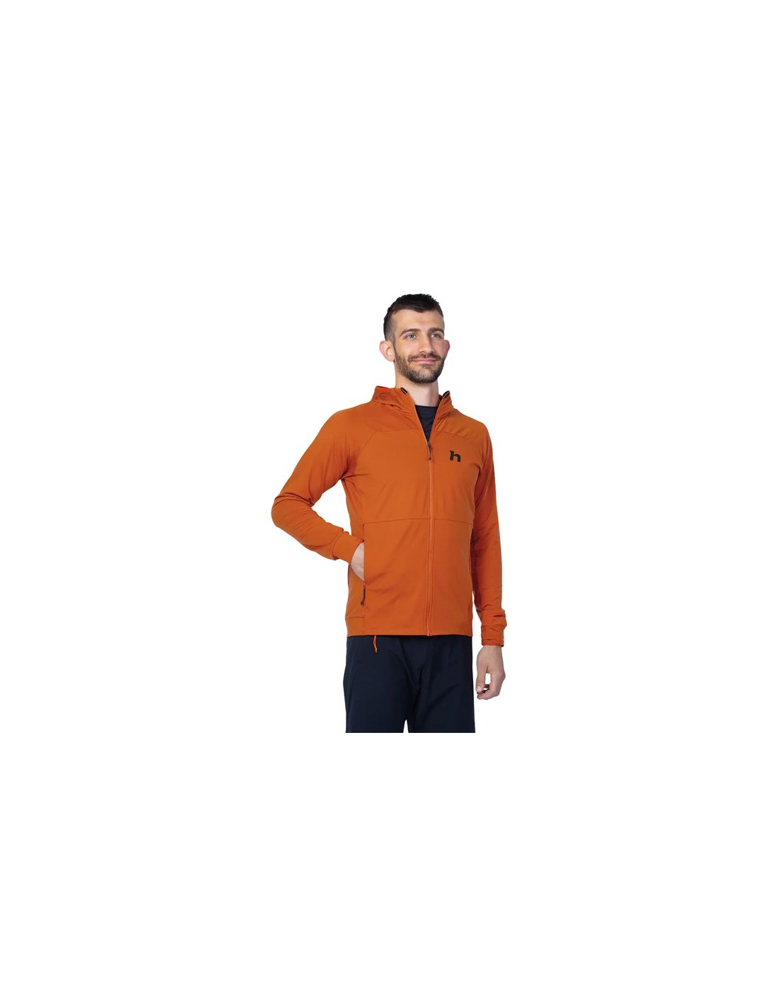 Den har en lang omvendt lynlås med høj krave og kædebeskytter. Hætten er trimmet med elastik for en optimal pasform, mens ærmerne har tommelfingerhuller og en elastisk kant. Derudover har den en praktisk åbning til uret på højre ærme.