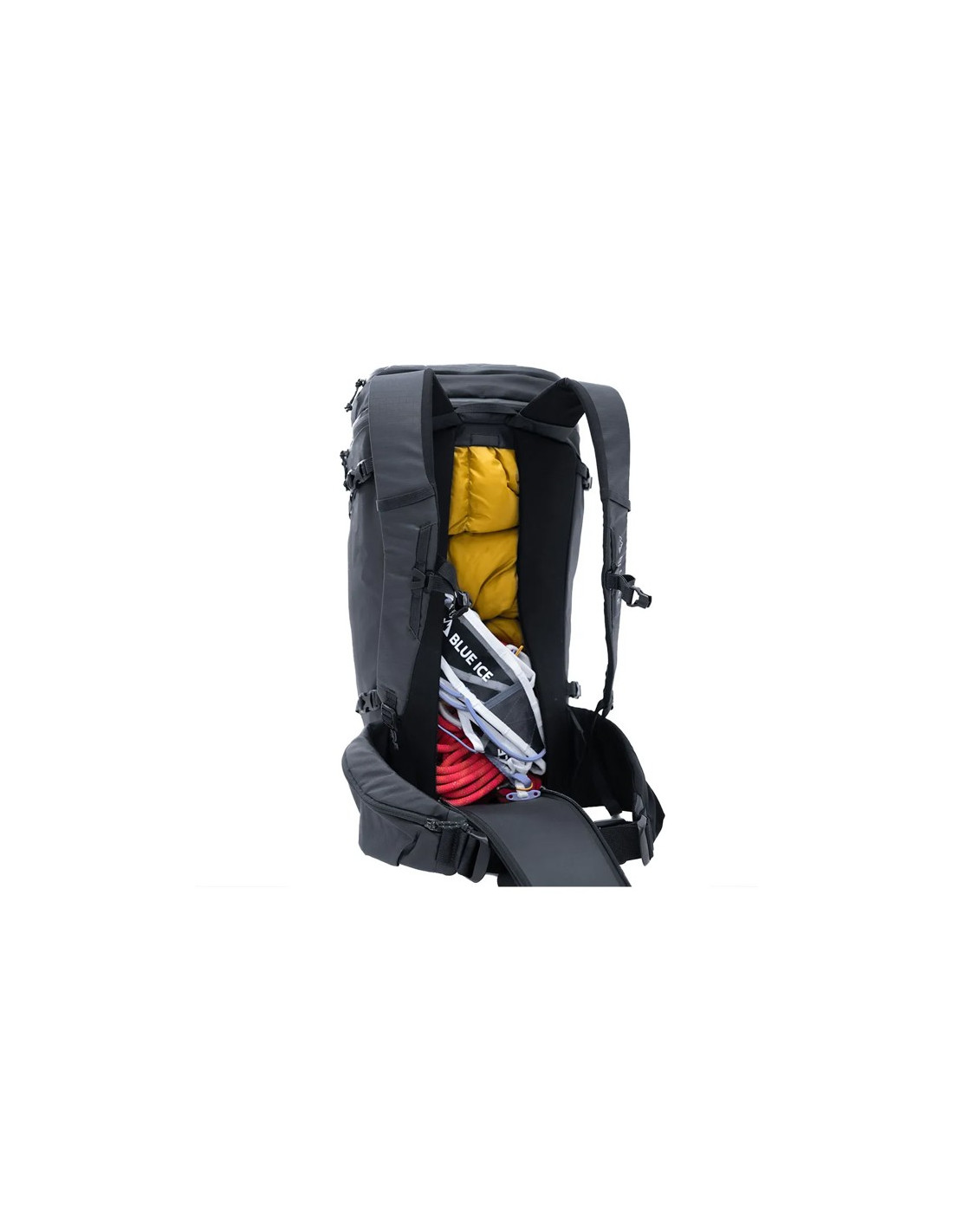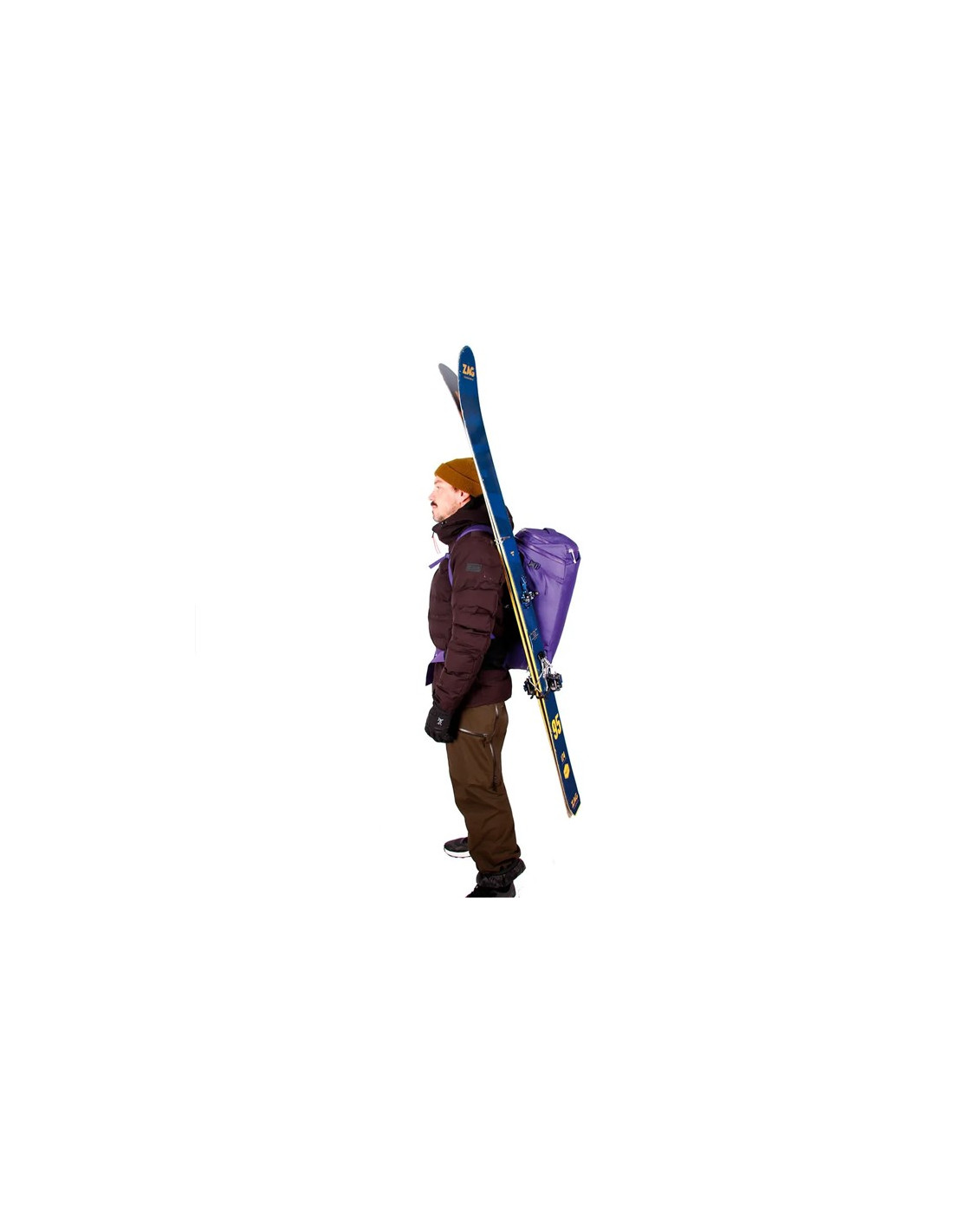Den tilbyder flere muligheder for transport af udstyr, herunder et diagonalt eller A-ski bæresystem, og er kompatibel med snowboards. Isøkserne kan fastgøres udenpå for hurtig udfoldelse.