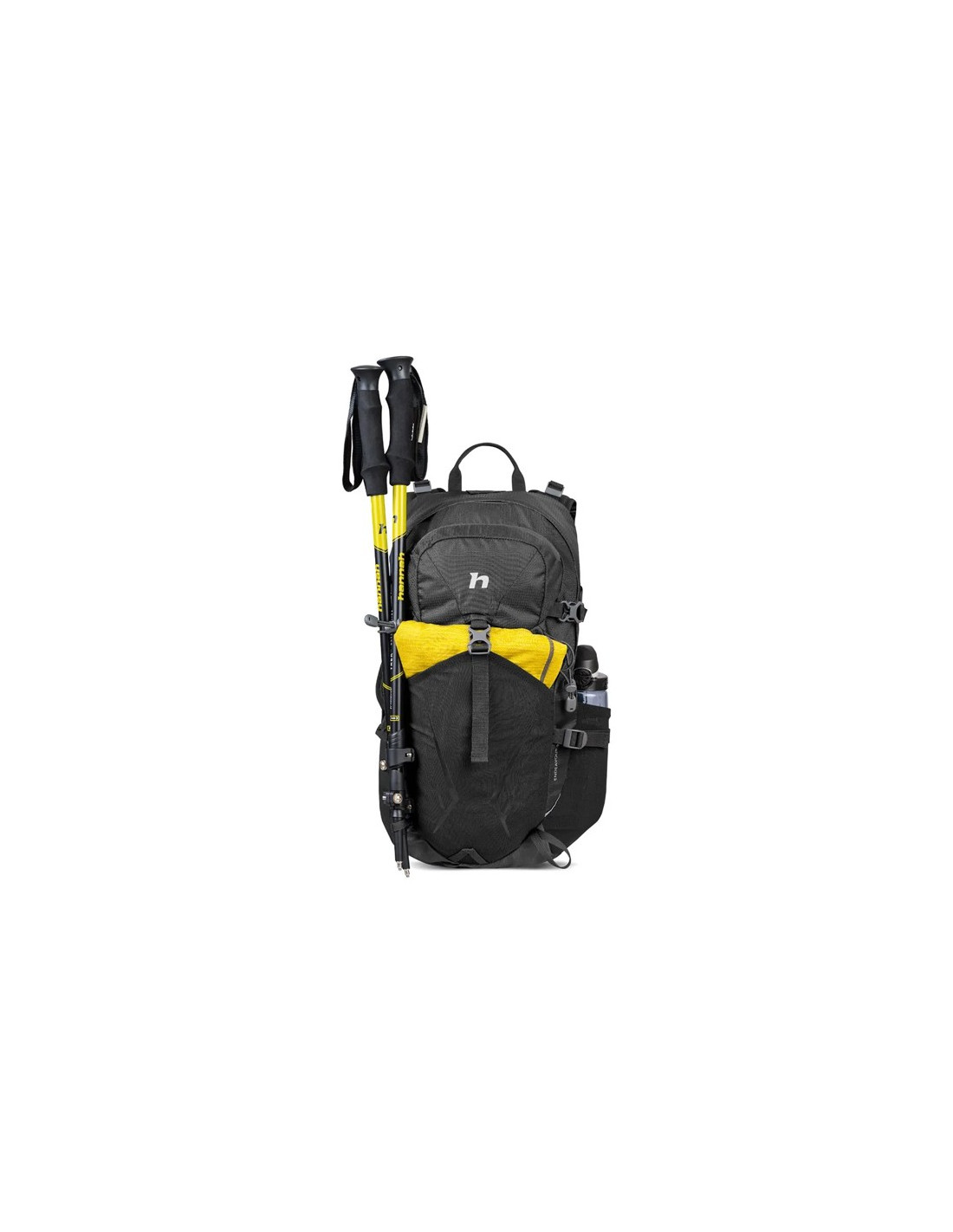 Takket være sidekompressionsstropperne kan rygsækkens volumen justeres, hvilket komprimerer den for større stabilitet og nem transport. Derudover har den et fastgørelsessystem til vandrestave, et fastgørelsespunkt til LED-lys og et internt hydreringstankdæksel med en udløbsport.