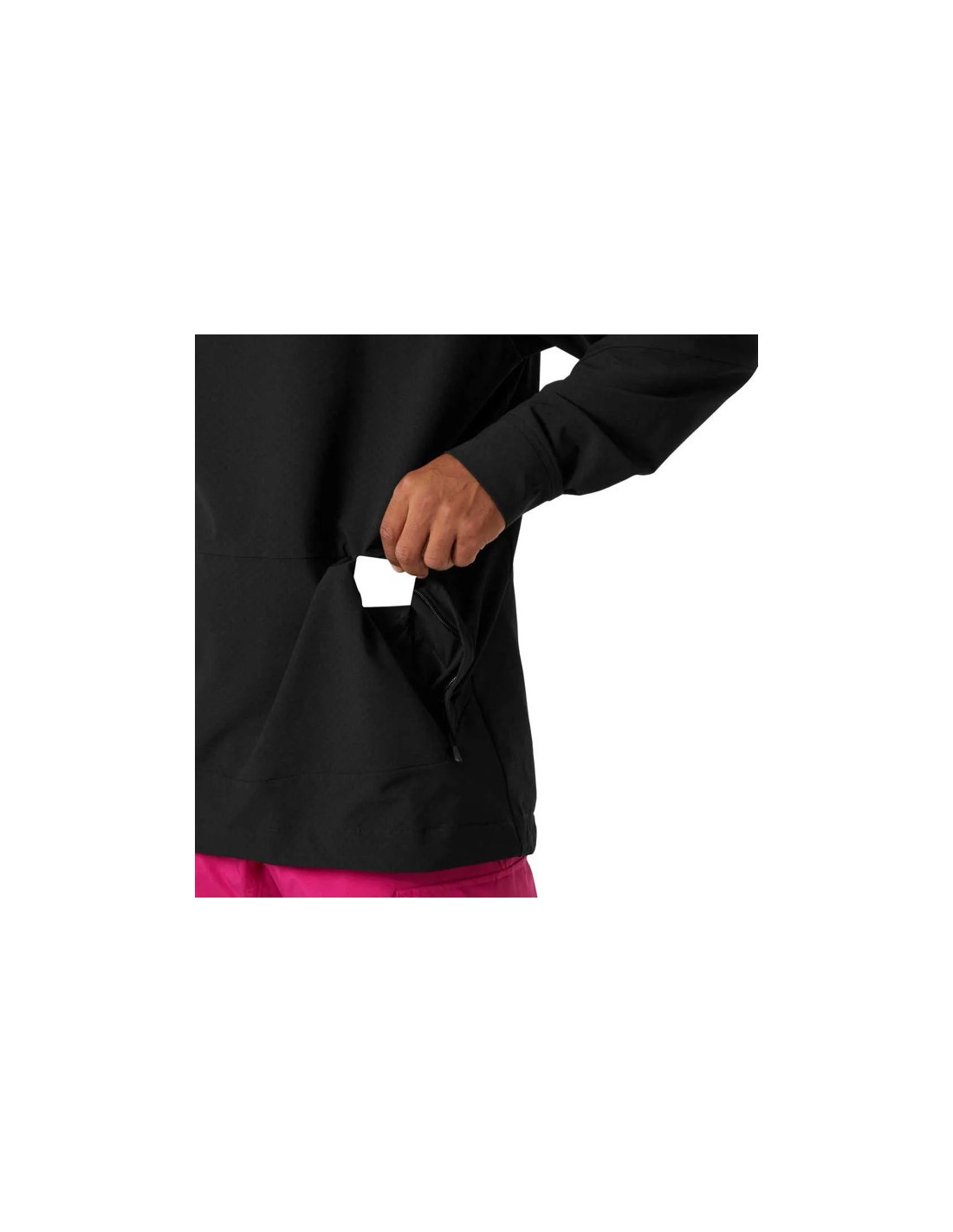 Den har detaljer såsom en liftkortlomme, en kængurulomme med lynlås til sikker opbevaring og en justerbar snøre forneden for en tilpasset pasform. Derudover gør dens afslappede og komfortable design den ideel til både skiløb og daglig brug.