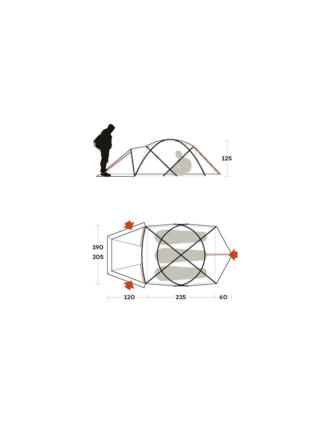 - RB System: Dobbelt tag med perimeter forstærkningsbånd lavet af 210D Oxford polyester, der fungerer som en sele for større modstand under ugunstige forhold.