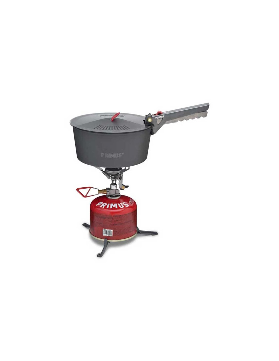 Primus-beholderstativet, der er fremstillet af 94 % biologisk plast og glasfiber, giver større stabilitet til komfurer, der forbindes direkte til gastønder. Især nyttigt, når du bruger store gryder eller laver mad på ujævne overflader.