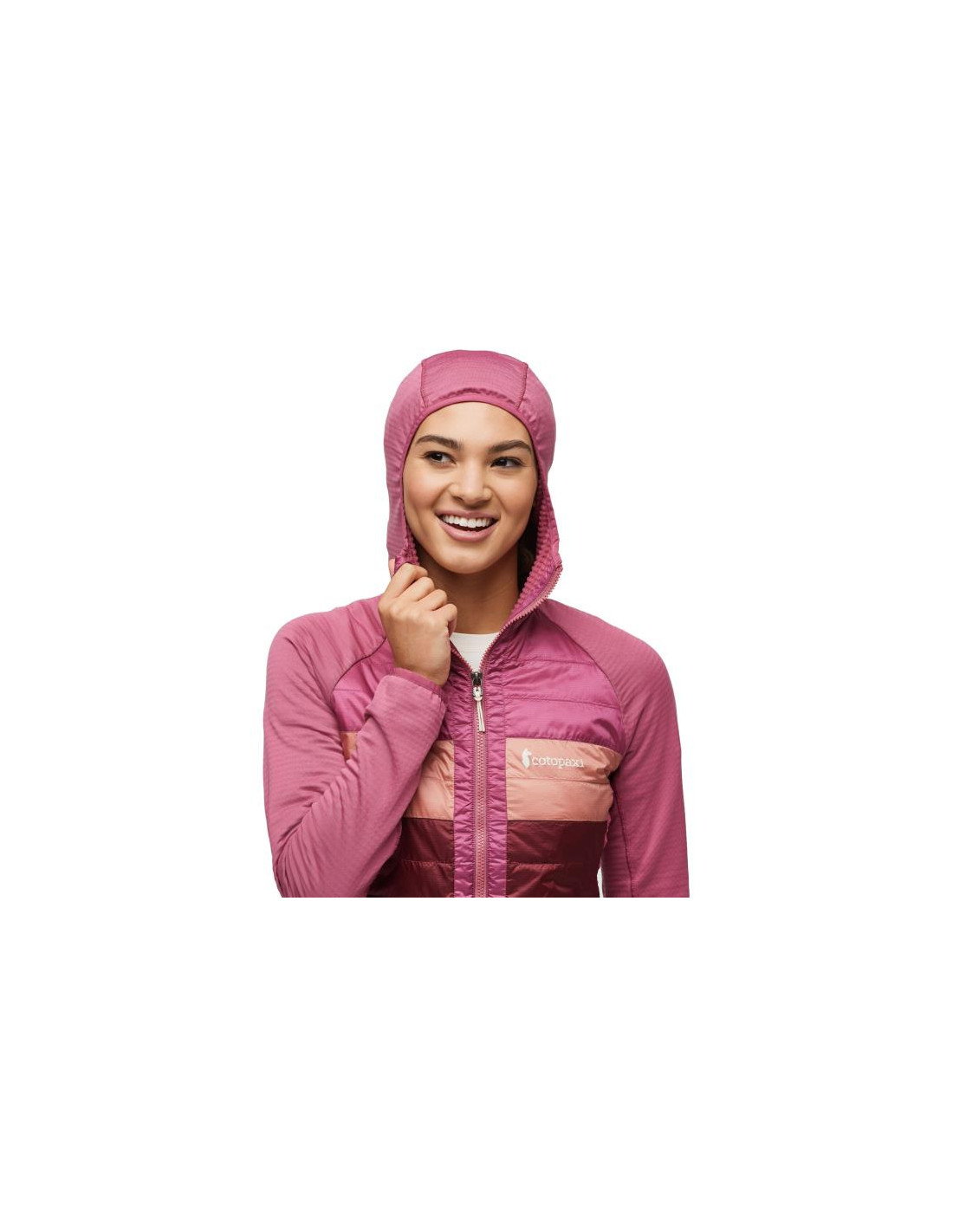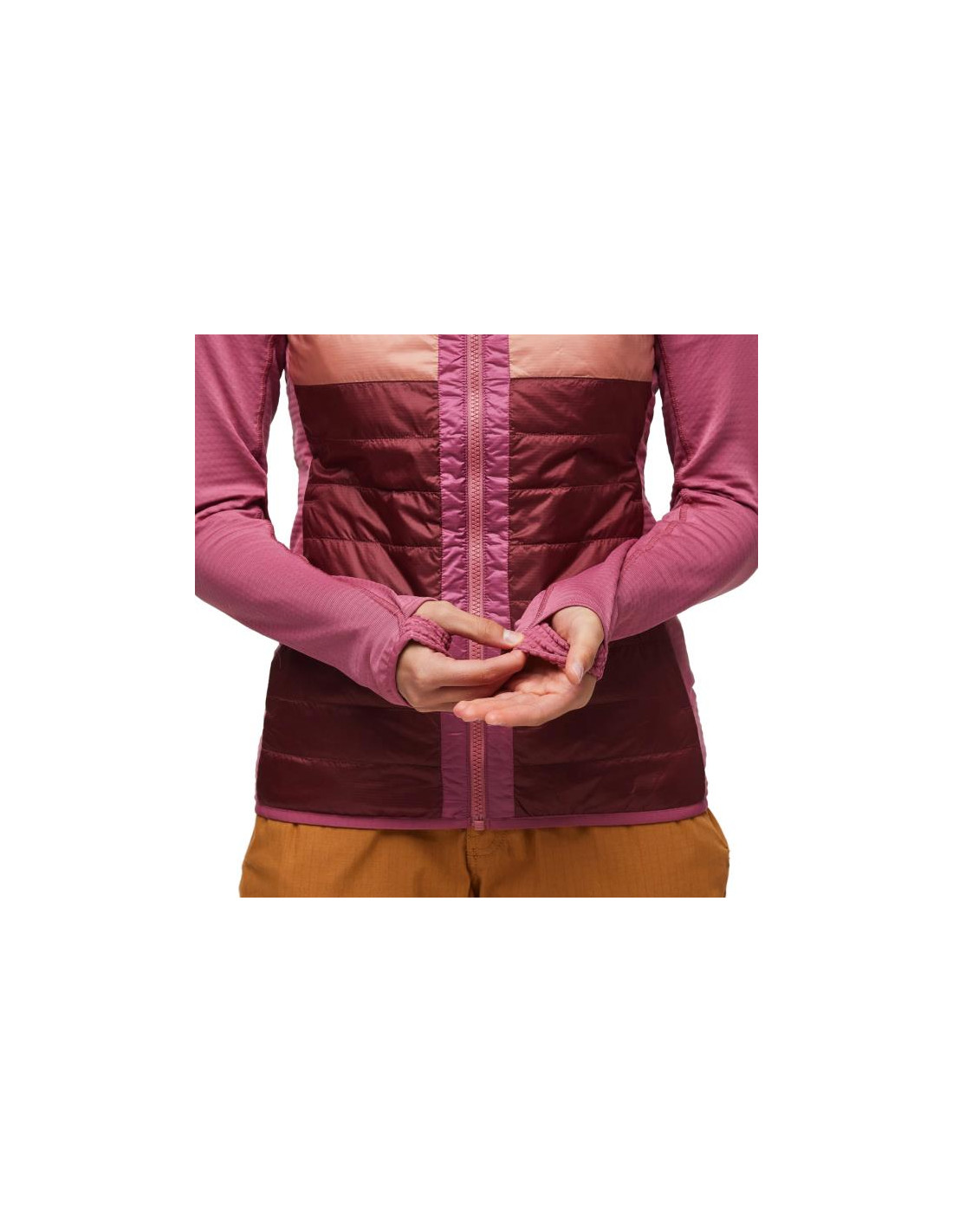 HybridjackeIsolierte Kapuzenjacke. Laufen, Radfahren, Wandern und Skifahren in dieser bewegungsbereiten Hybridschicht.