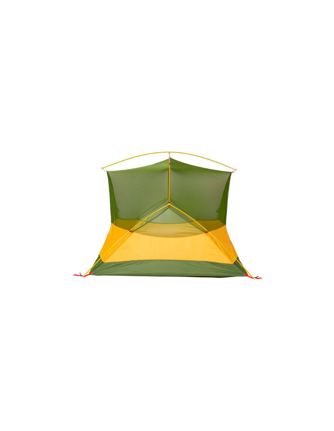 Jede Seite verfügt über einen Eingang und einen großzügigen Vorraum, der als Gepäckaufbewahrung genutzt werden kann. Das Innenzelt besteht teilweise aus einem feinmaschigen, belüfteten Moskitonetz. Im unteren Drittel sorgt dichteres Ripstop-Nylon für Schutz vor Wind und Blicken von außen.