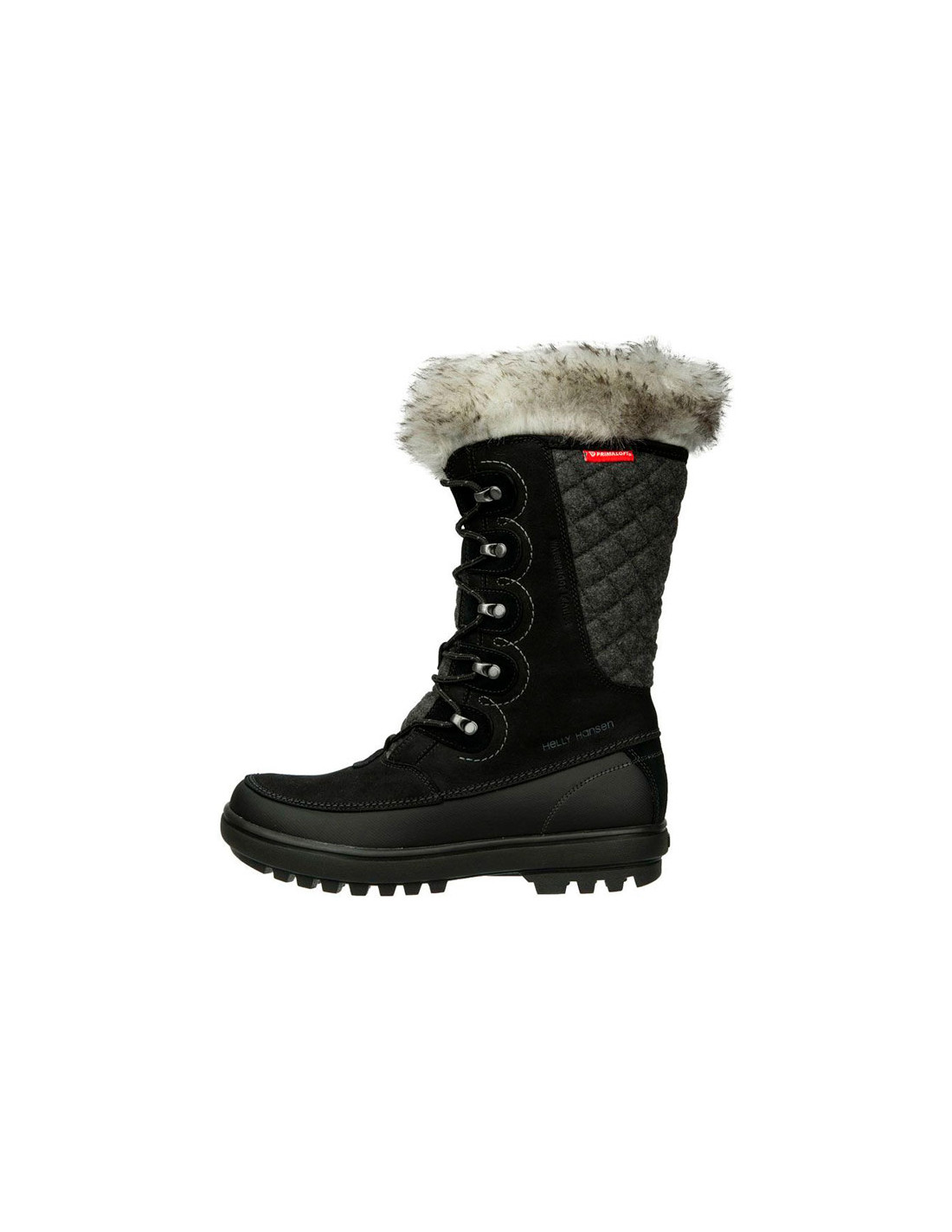 Funktionen: Modell für Frauen. Hoher Stock. Versiegelte Nähte. Schutzband von den Zehen bis zur Ferse kombiniert mit wasserdichtem Nubukleder. Obermaterial aus Kunstfell. Gefüllt mit PrimaLoft-Fasern. Vulkanisierte Gummizwischensohle und hervorragender Schutz. Herausnehmbare Eco Ortholite Einlegesohle. HH Max-Grip / HH Surround-Grip Gummisohle.