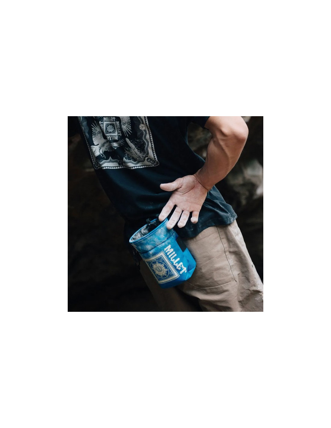 Magnesiumtasche, die zum Klettern sowohl auf Felsen als auch im Fitnessstudio konzipiert ist und sich durch ihr großzügiges Volumen und ergonomisches Design auszeichnet. Er wird mit einem Clip-Gürtel geliefert, der eine bequeme und sichere Passform ermöglicht.