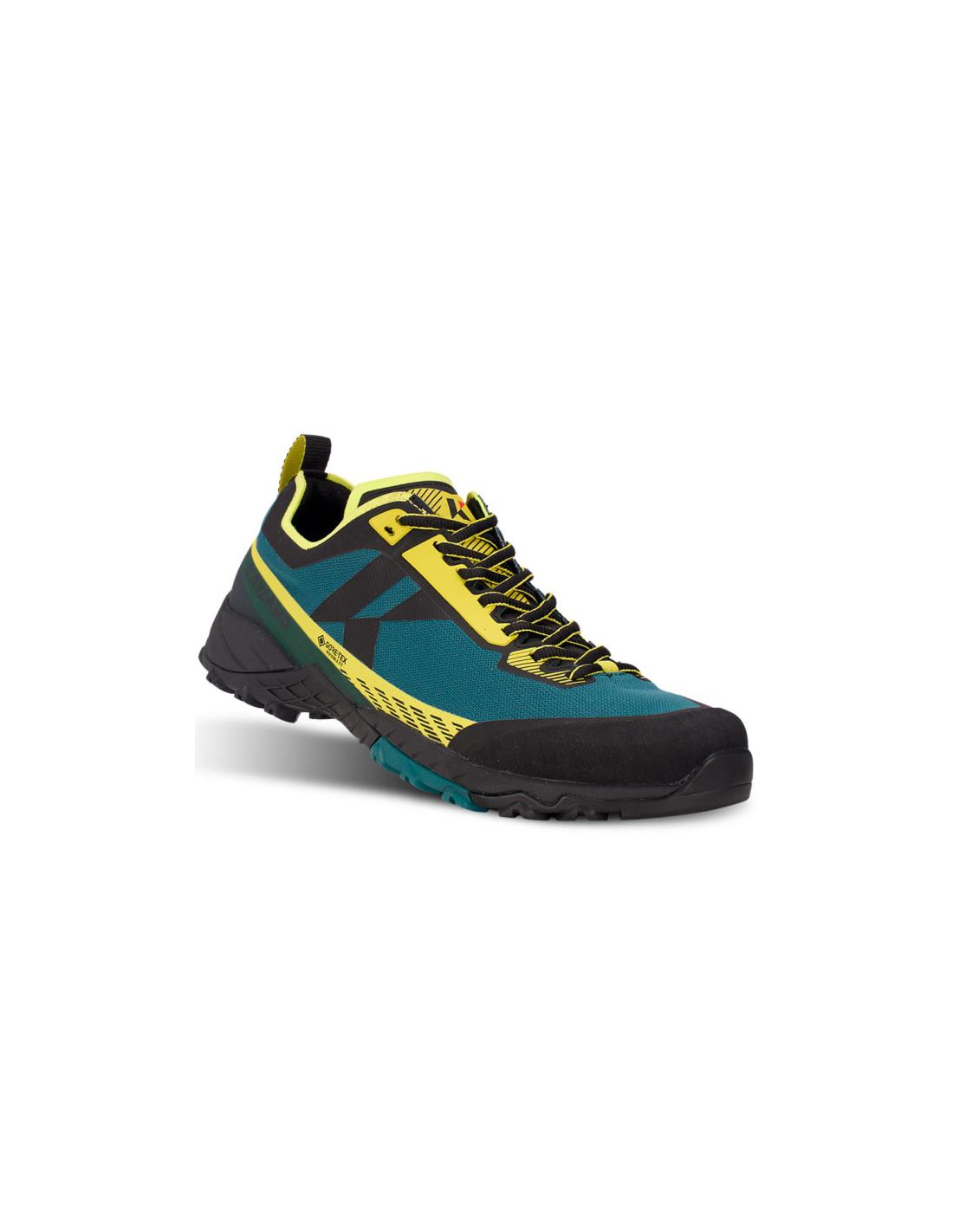 Das Oberteil verfügt über eine schützende Zehenkappe, die als Hindernisbarriere dient, während der dichte Stoff darauf ausgelegt ist, Risse und Abschürfungen zu verhindern. Für die Haltbarkeit wurden TPU-Oberflächen verwendet. Die Verstärkungen, die ebenfalls in den Schnürbereich integriert sind, beschleunigen das Verschließen und verhindern versehentliches Reißen des oberen Teils. Der Netzkragen und die Zunge sorgen für Atmungsaktivität. Die Vibram-Sohle® sorgt für Grip und Stabilität auch auf unebenen Oberflächen. Die Gore-Tex-Membran® hält den Fuß trocken.