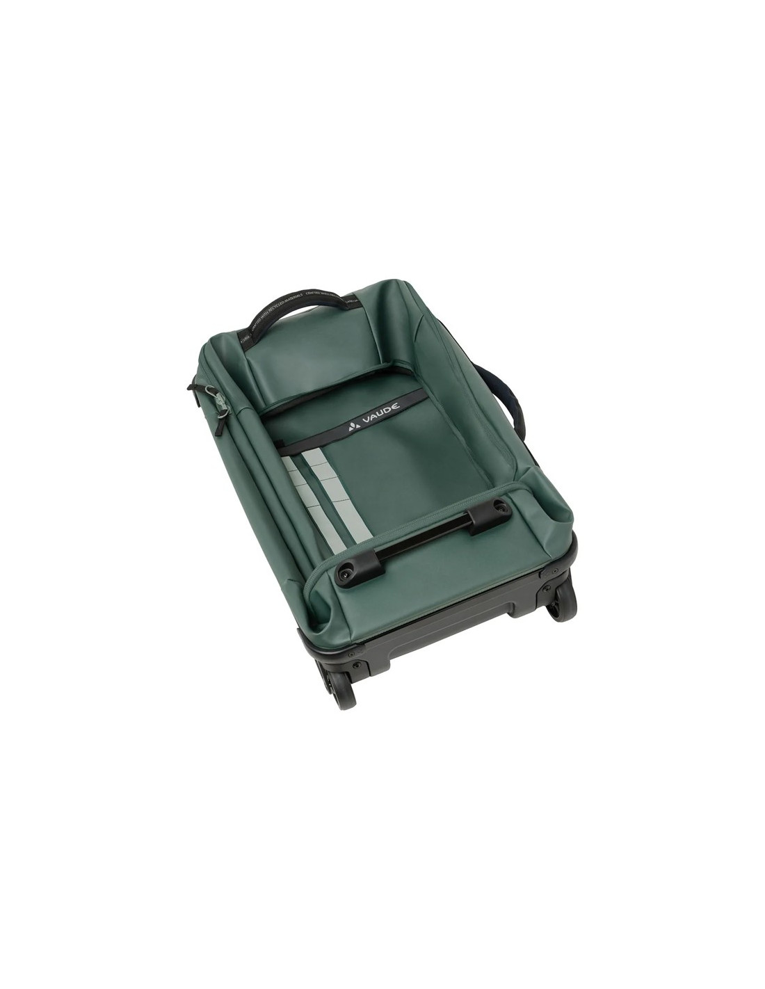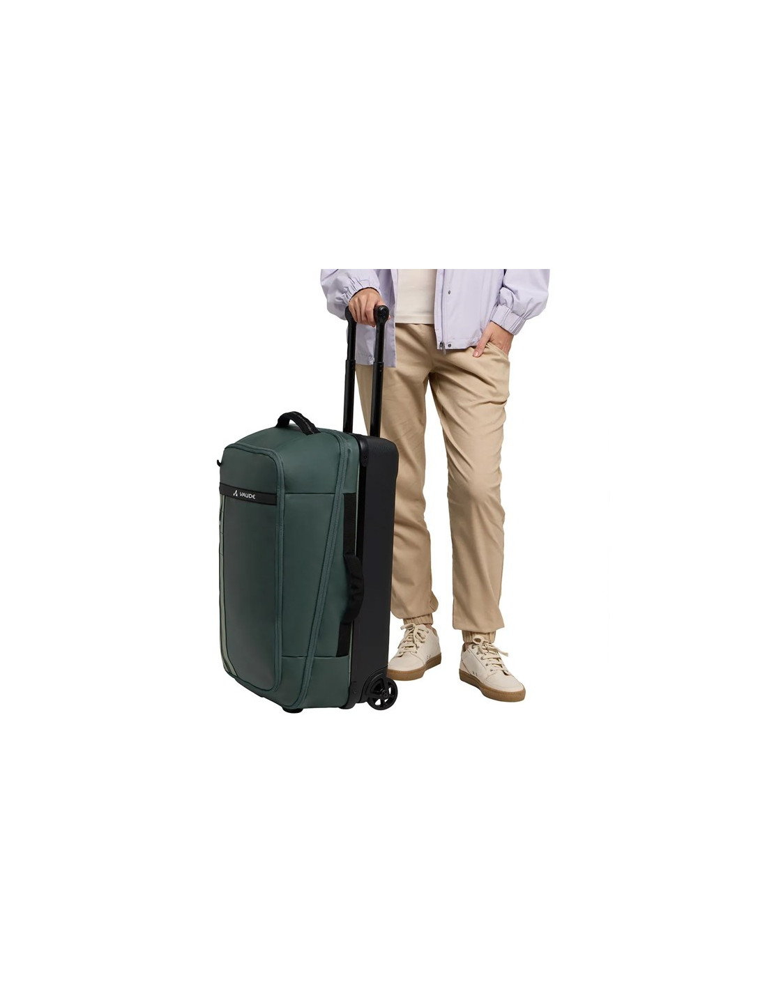 Er verfügt über leise Gummiräder und einen abnehmbaren Teleskopgriff für einen einfachen Transport. Durch die seitlichen Griffe kann er auf verschiedene Arten getragen werden. Darüber hinaus sind reflektierende Details auf der Vorderseite für mehr Sicherheit integriert.