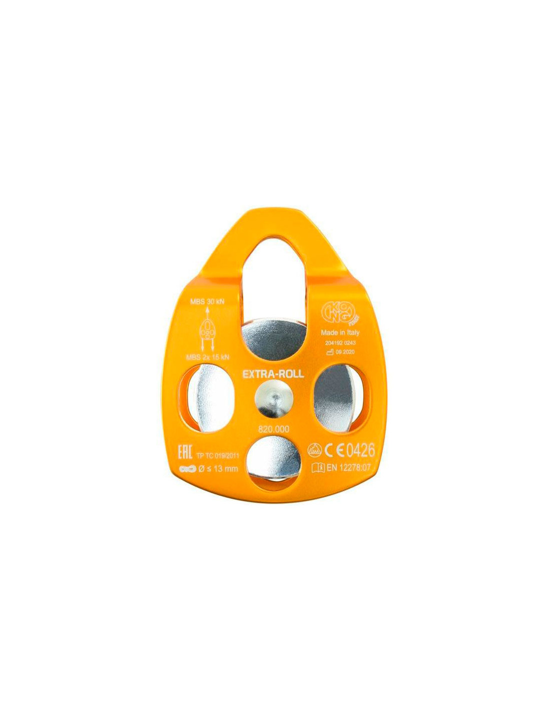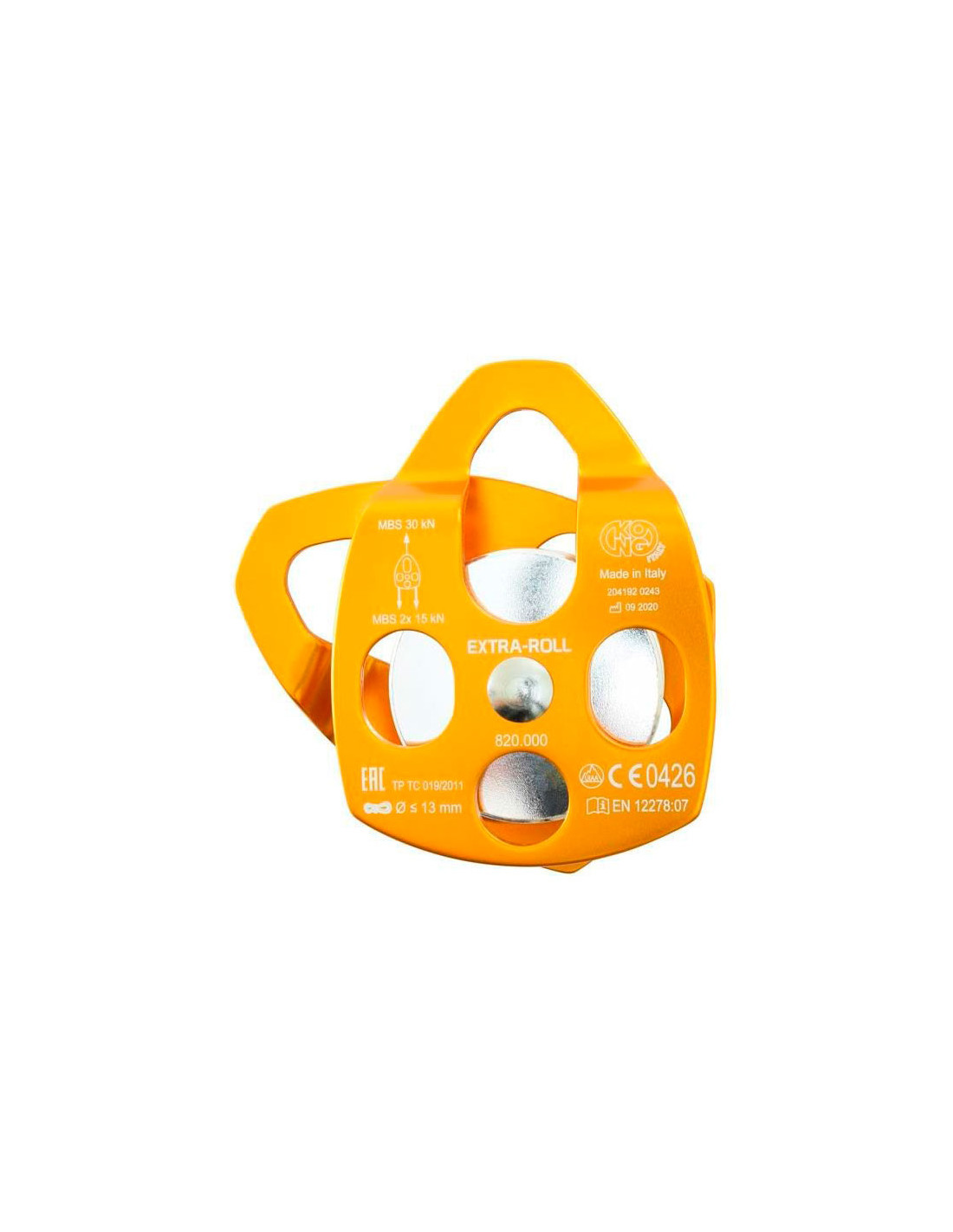 Kompakte und leichte Umlenkrolle aus Aluminium mit beweglichen Seitenteilen und wasserdichten Kugellager.