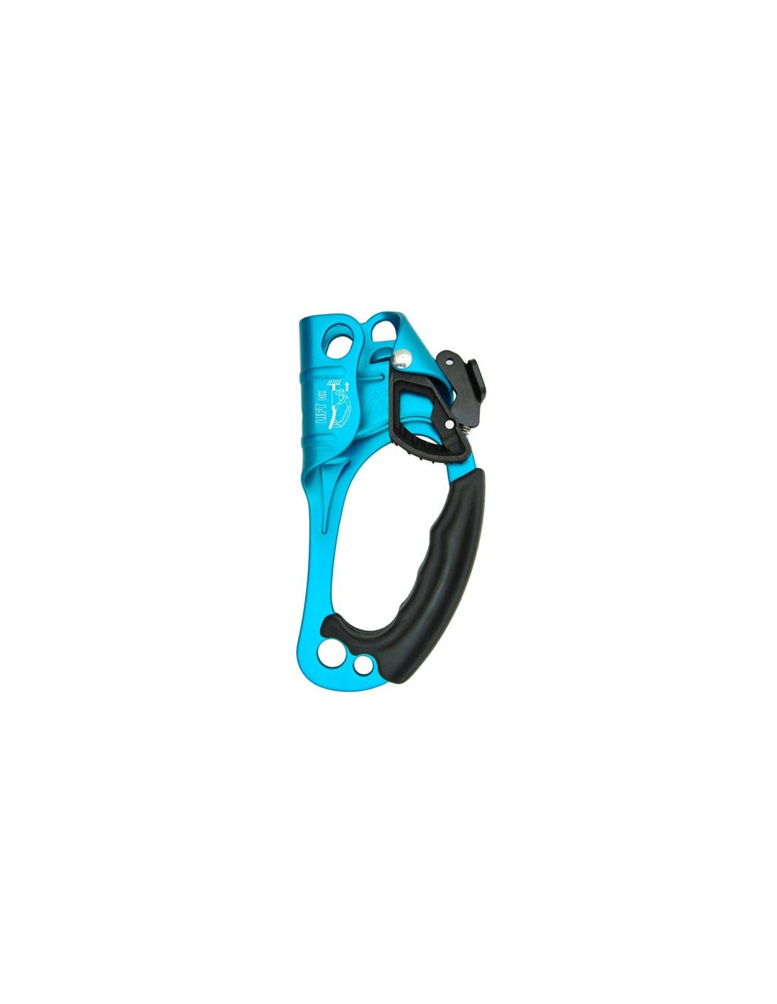 - Spezielles System -kleine Löcher- zum Abtransport von Wasser oder Schlamm: Kleine Löcher am Klemmnocken sorgen für das Freibleiben der Steigklemme - Ideal also auch für Höhlentouren und Canyoning!