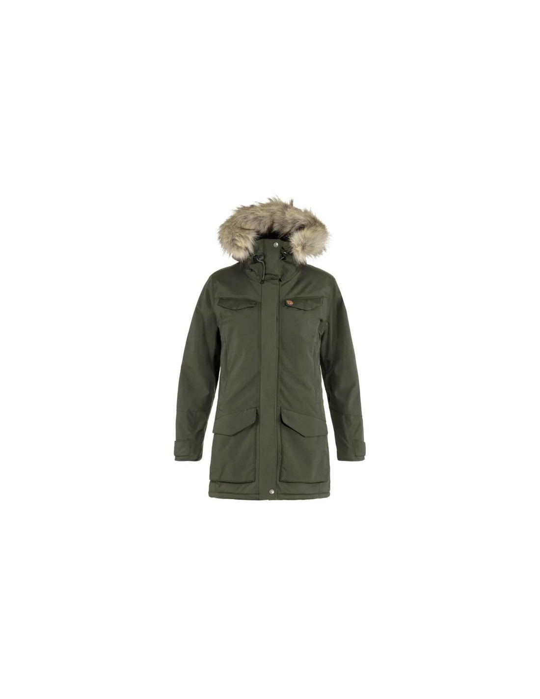 Es verfügt über eine mit Fleece gefütterte Sturmkapuze und Metalldraht für eine perfekte Passform, einen schützenden Rand und einen abnehmbaren Kunstpelzbesatz. Darüber hinaus verfügt es über acht Taschen, die ausreichend Platz für Ihre wichtigsten Utensilien bieten. Für eine individuelle Passform verfügt es über einen Kordelzug in der Taille und einen Zwei-Wege-Reißverschluss mit Schutzklappe.