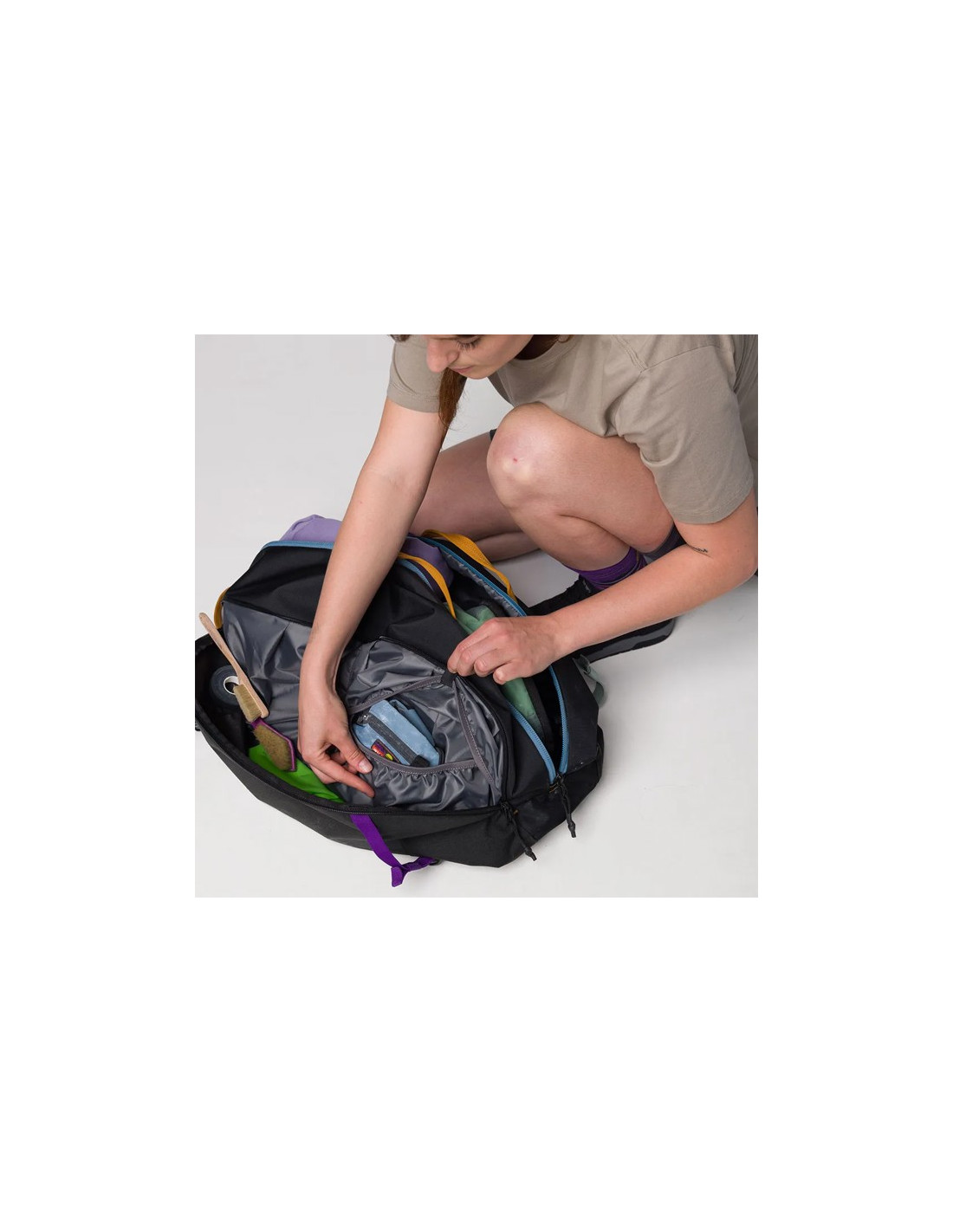 Made with abrasion-resistant materials, it is prepared to withstand demanding treatment and rubbing against rock. Its interior design allows for efficient organization of the material, with specific compartments and pockets for the rope, climbing shoes, harness and quickdraws, ensuring that everything is accessible and in place.