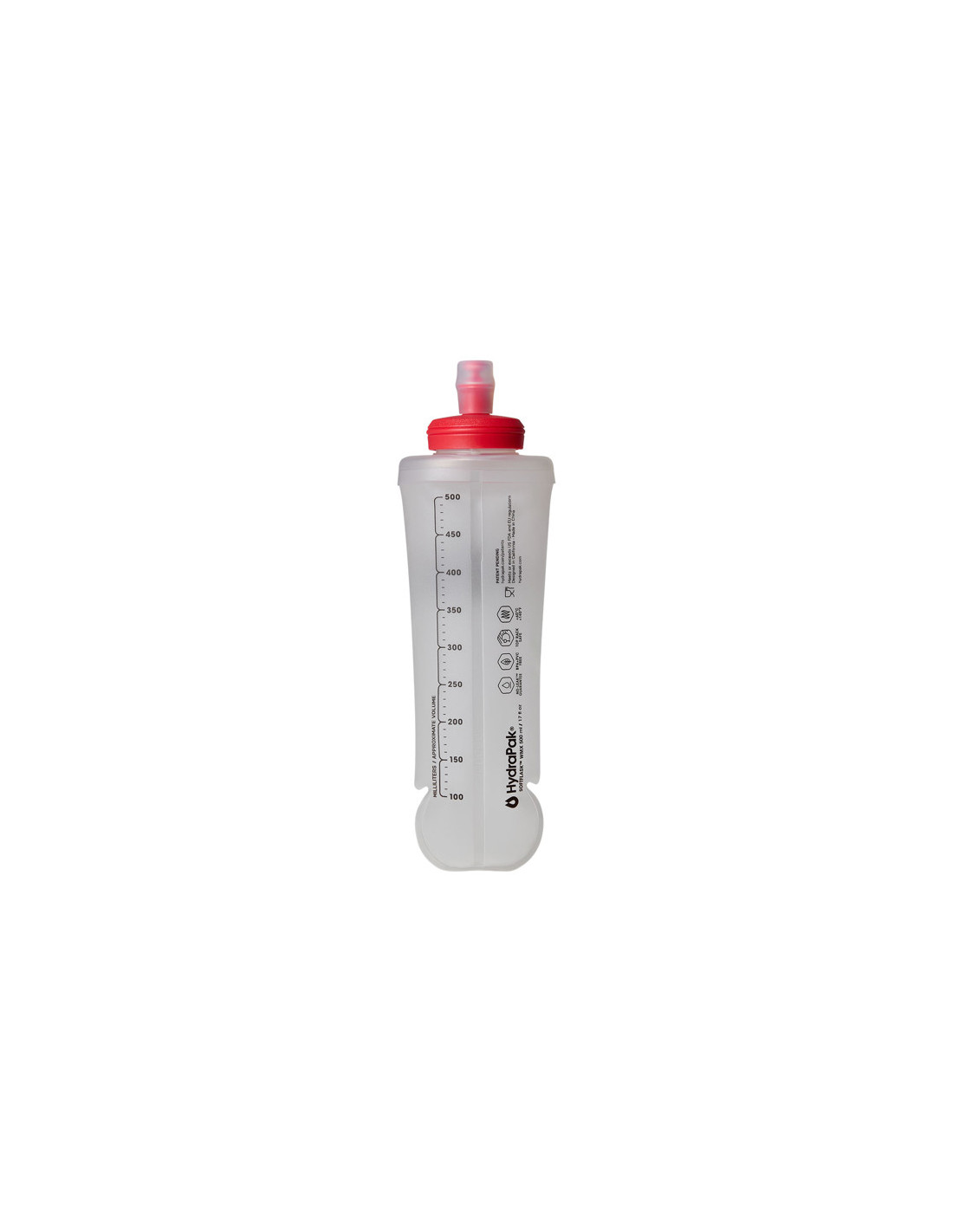 The Soft Flask 500 ml bottle features a flexible and comfortable design that shrinks as you drink, a feature that helps minimize water movement during intense activities. Its design makes it ideal to wear on most belts and hydration vests.