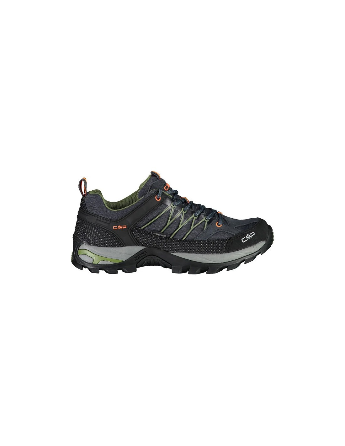 The RIGEL LOW WP are waterproof hiking shoes with contrasting color details that give them a sporty and attractive style. The structure and compound of the CMP FullOn GRIP sole guarantee optimal grip on any surface, both dry and wet.