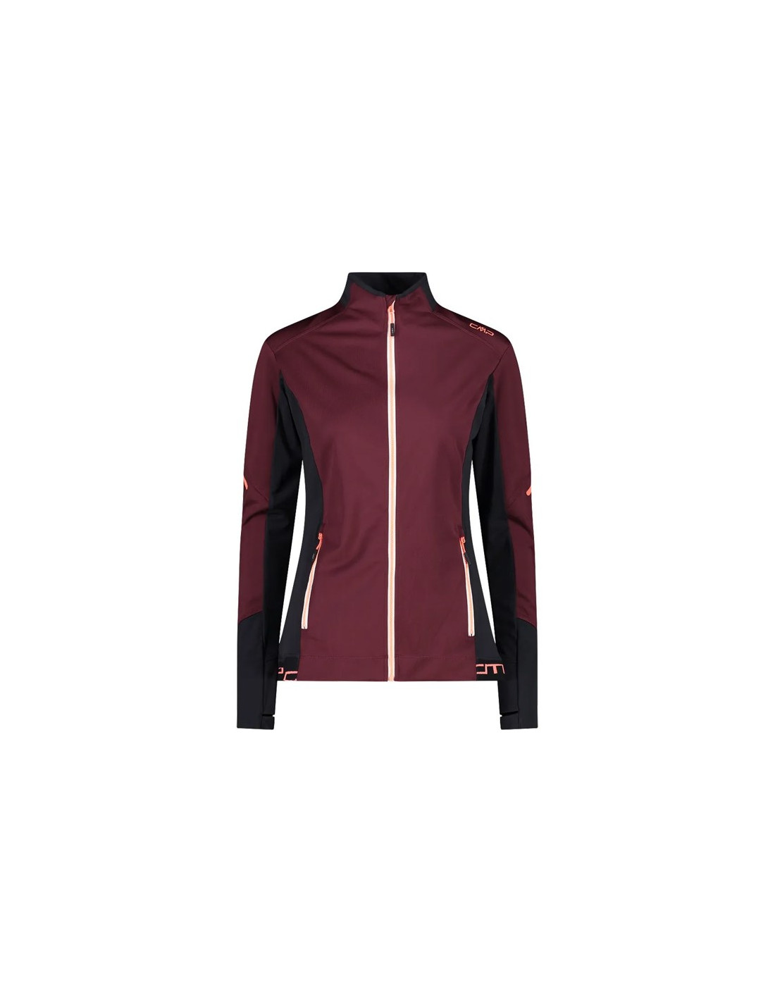 The HYBRID BURGUNDY women's jacket is a versatile garment for winter activities. Made with a combination of lightweight and protective softshell fabric, it provides comfort and freedom of movement. The Stretch Performance fabric offers excellent elasticity.