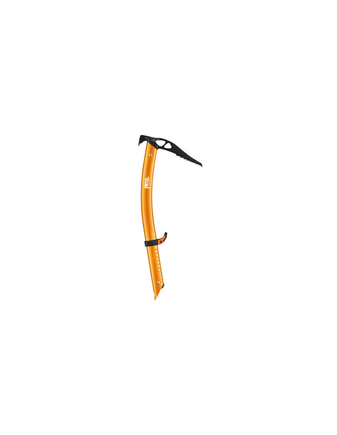 The Gully ice−axe has a slightly curved shaft for improved swing. A steel head and 3mm banana−shaped pick provides efficient penetration and easy unhooking.