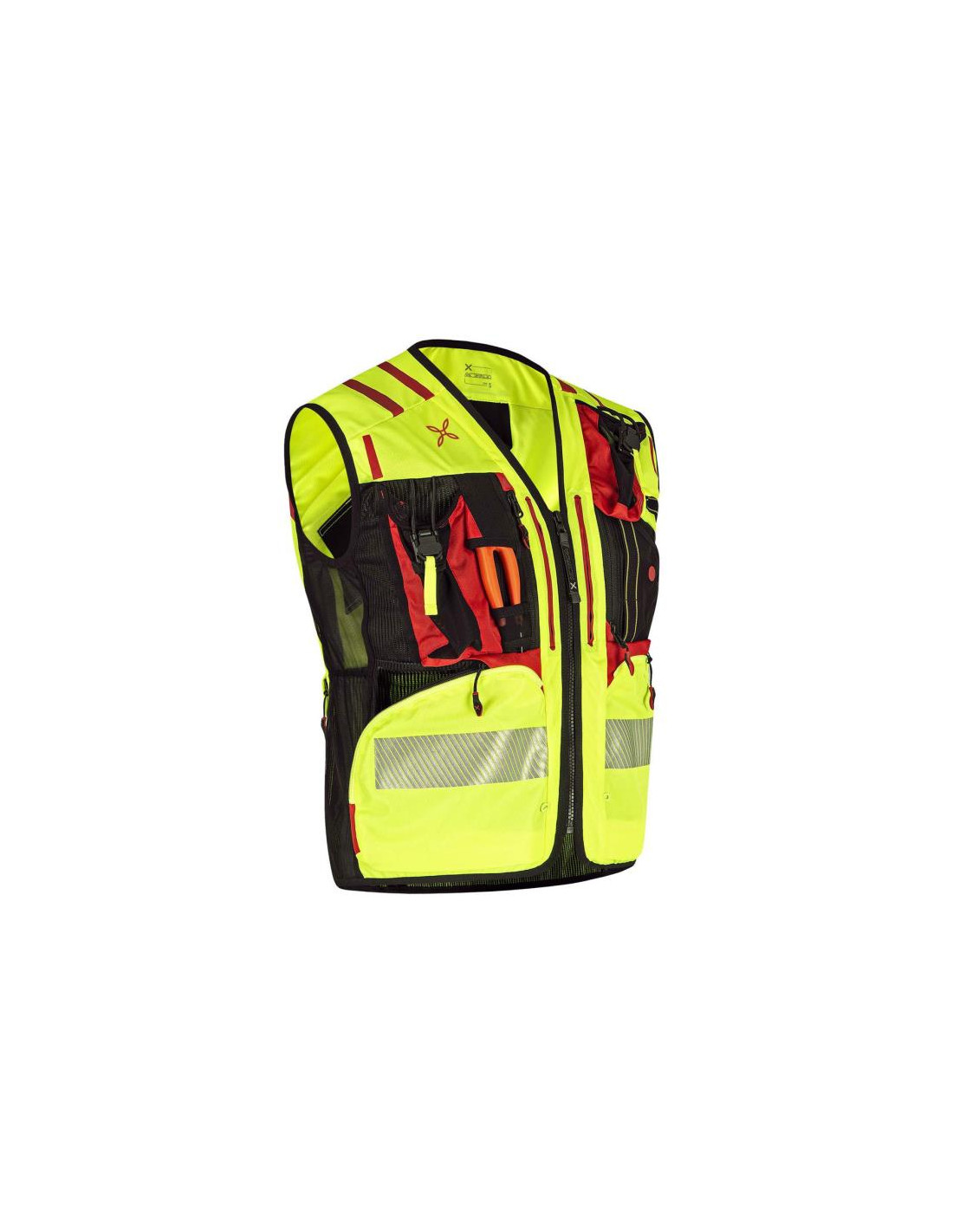 - Chaleco de poliéster de alta visibilidad con certificación EN ISO 20471.