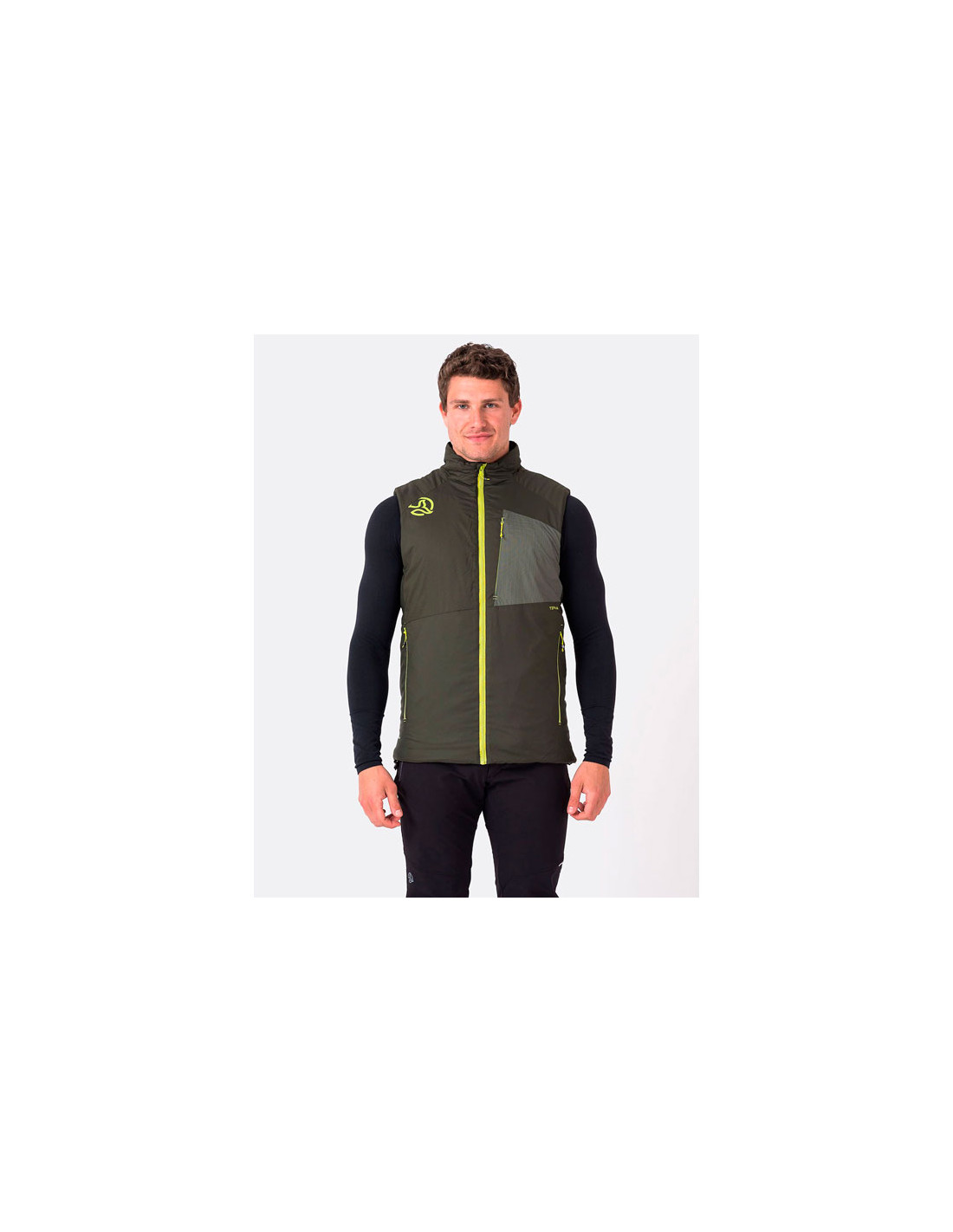 Chaleco para hombre, sostenible y multifuncional. Una prenda cálida, ligera y compactable, producida con tejidos reciclados y rellena de Primaloft® Silver Eco 133 gramos para un nivel de aislamiento muy elevado incluso en condiciones húmedas.