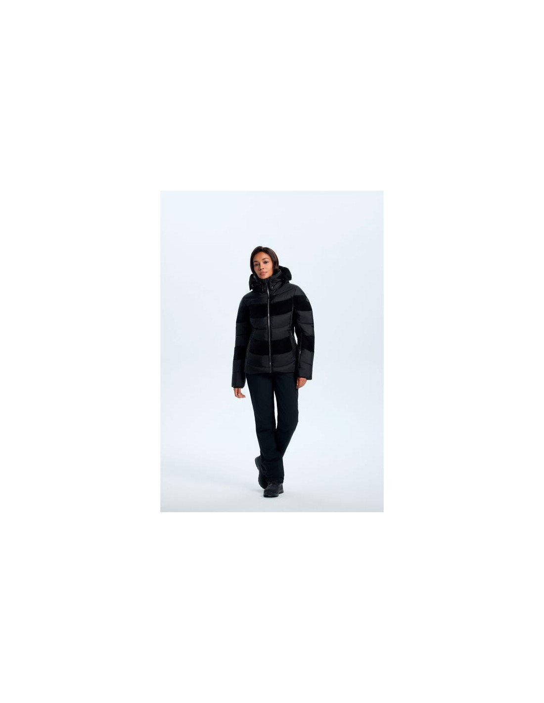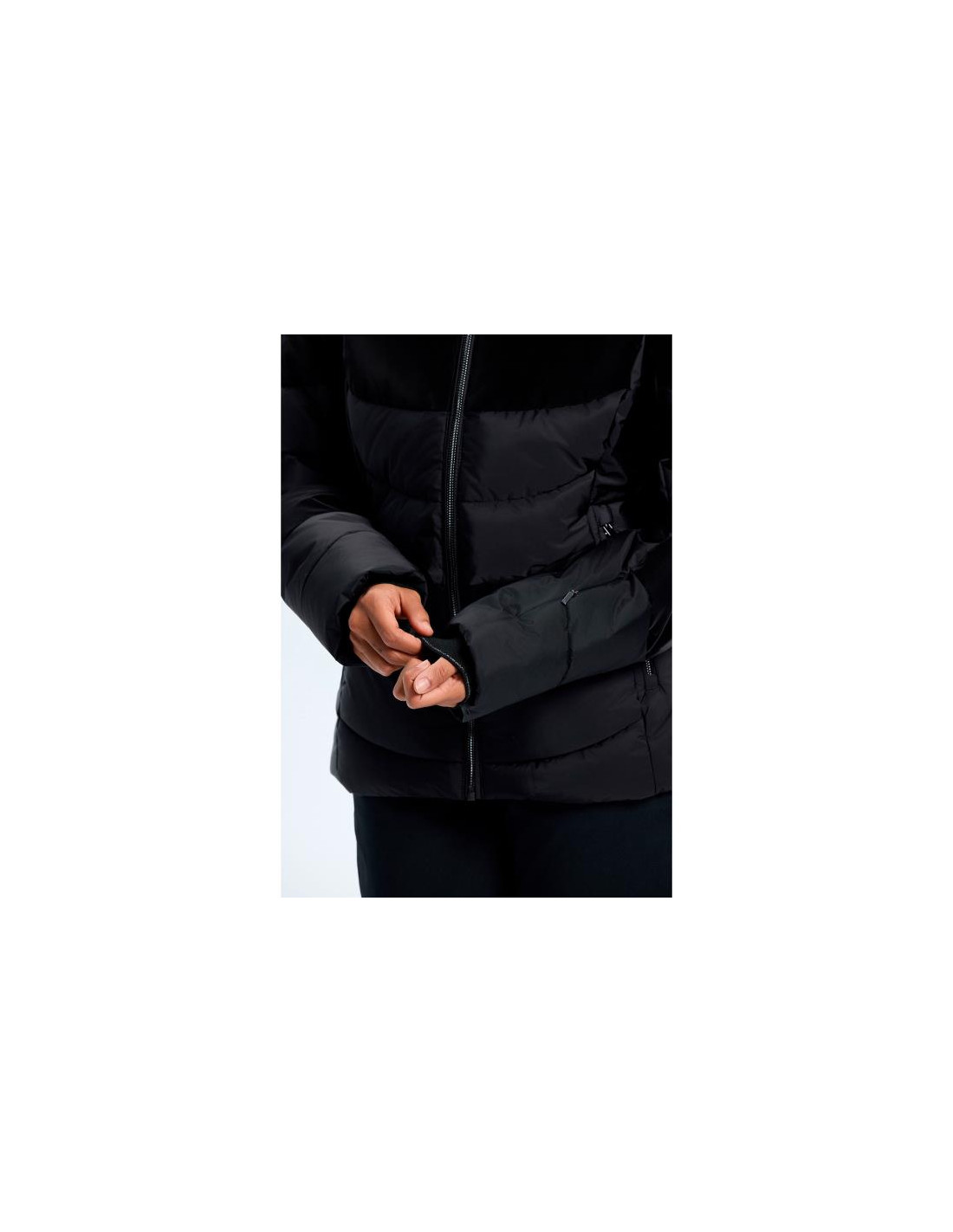 - Junta para nieve (“snow gaiter”): Banda antinieve desmontable para evitar la entrada de nieve por el bajo de la chaqueta durante actividades en pista.