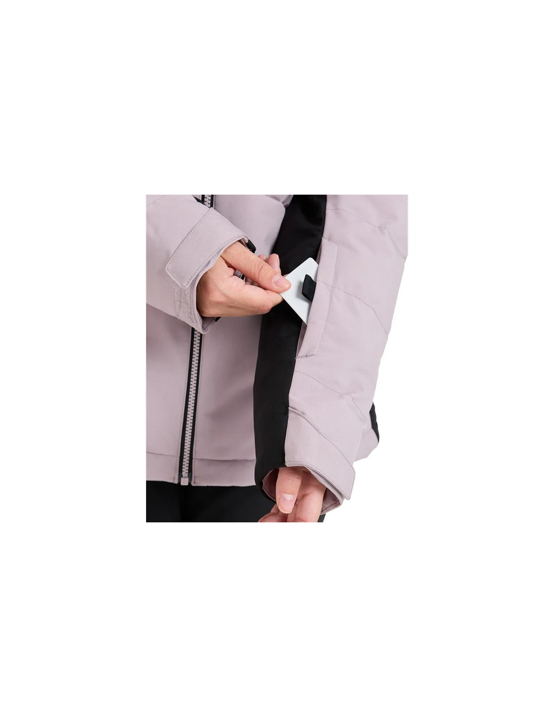 - Bolsillos calientamanos, bolsillos internos de malla y bolsillo para forfait en la manga.