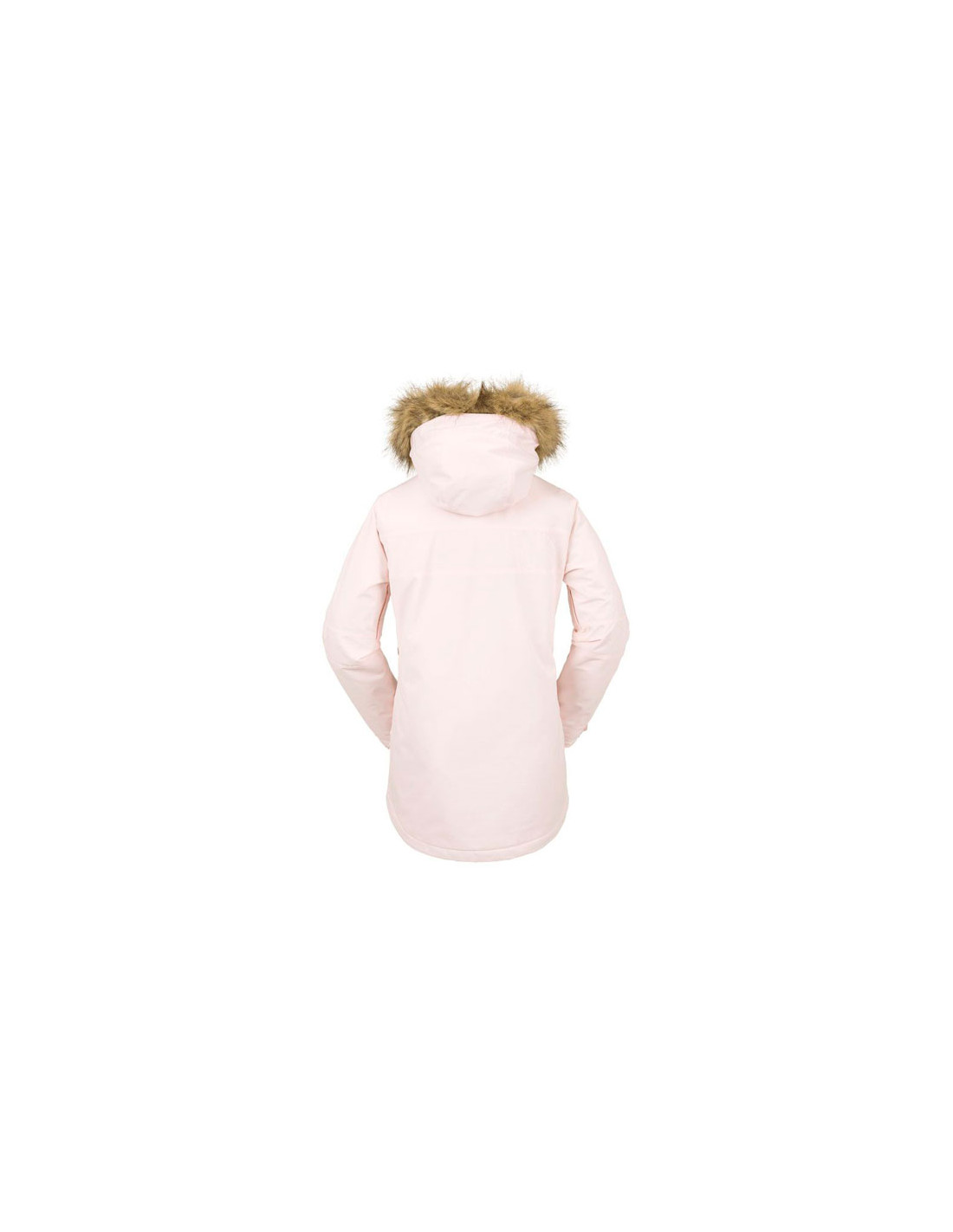 - Capucha con cordón ajustable y adorno de piel sintética extraíble.