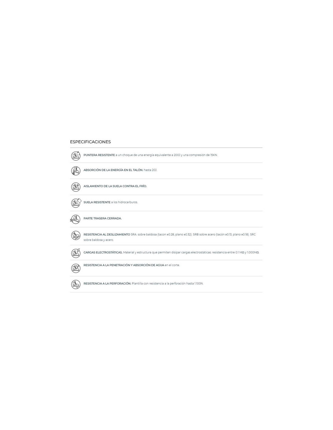• Puntera de protección de composite (Ligera, no magnética, aislante térmico, recupera su forma después del impacto establecido en la normativa).