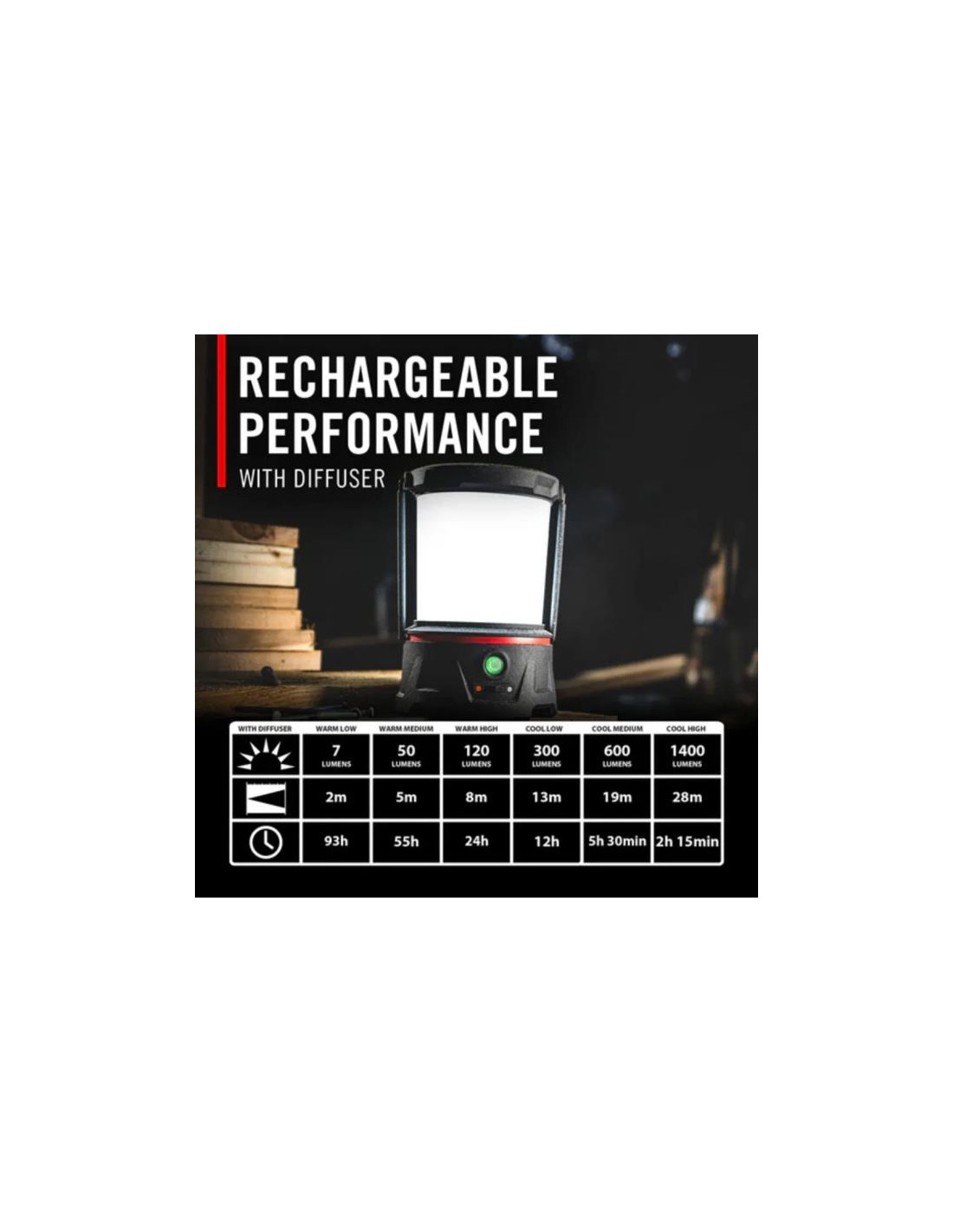 Además, si bajas la intensidad, la batería aguantará hasta 93 horas, ¡así que no tendrás que preocuparte por quedarte a oscuras!