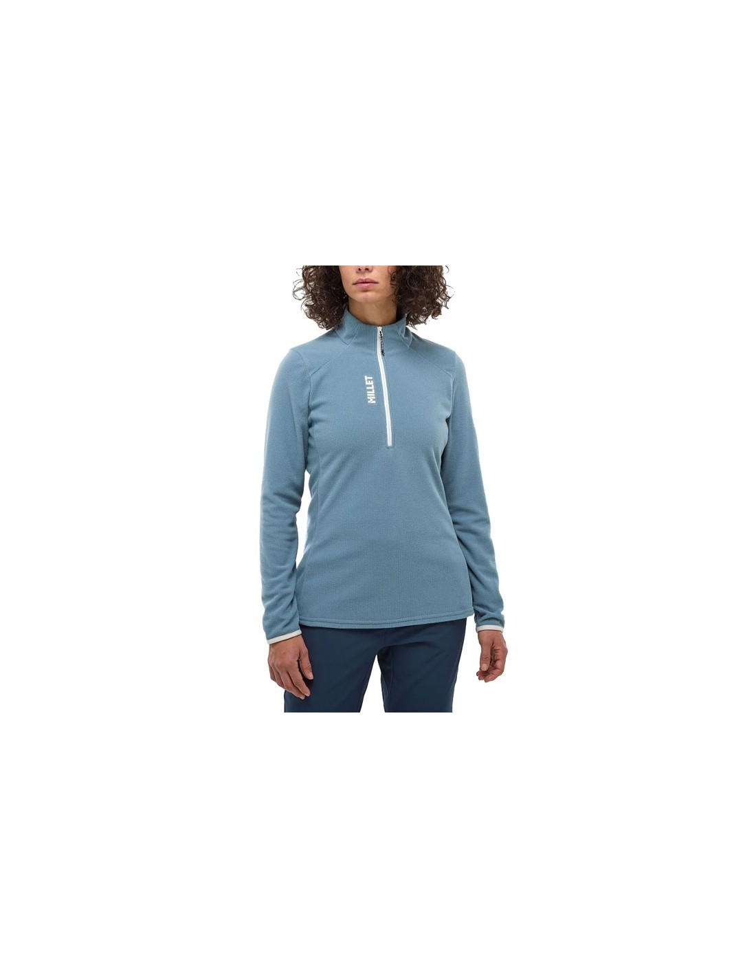 Es una prenda suave y elástica, muy cómoda para todo tipo de actividades al aire libre durante todo el año. Cuenta con una media cremallera central que llega hasta un cuello alto para ayudar a regular la temperatura corporal de forma rápida y sencilla.