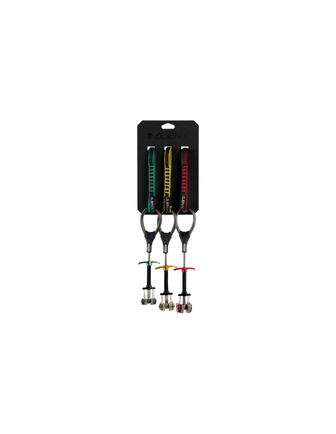 El Pack Alien X Equinox (semáforo) reúne tres tallas esenciales del reconocido micro cam Alien X: verde (1/2), amarillo (3/4) y rojo (1). Este conjunto es la elección de referencia para escaladores de todos los niveles que buscan versatilidad y precisión en fisuras de distintos tamaños, manteniendo la ergonomía y facilidad de uso que distinguen a los Alien X.