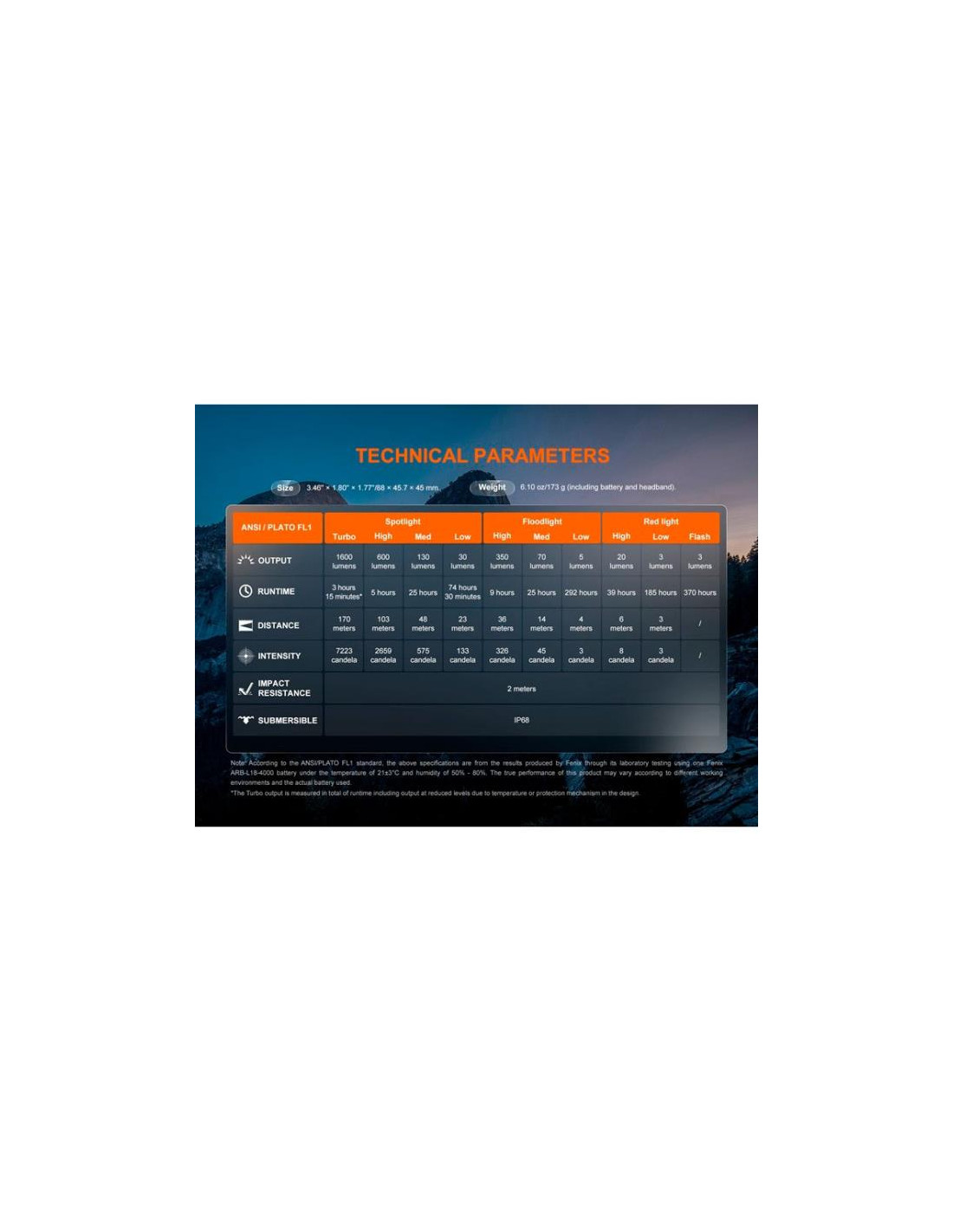 - Potencia máxima de 1600 lm y 170 m de alcance.