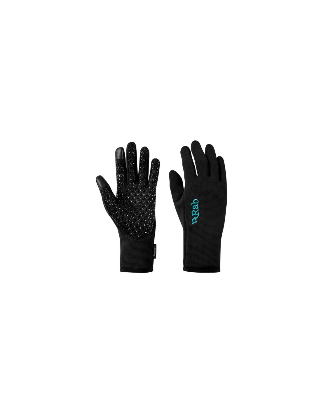 Guantes ligeros y cortavientos de la marca Rab para mujer. Su diseño adaptado a la anatomía de la mano facilita el ajuste y el confort.