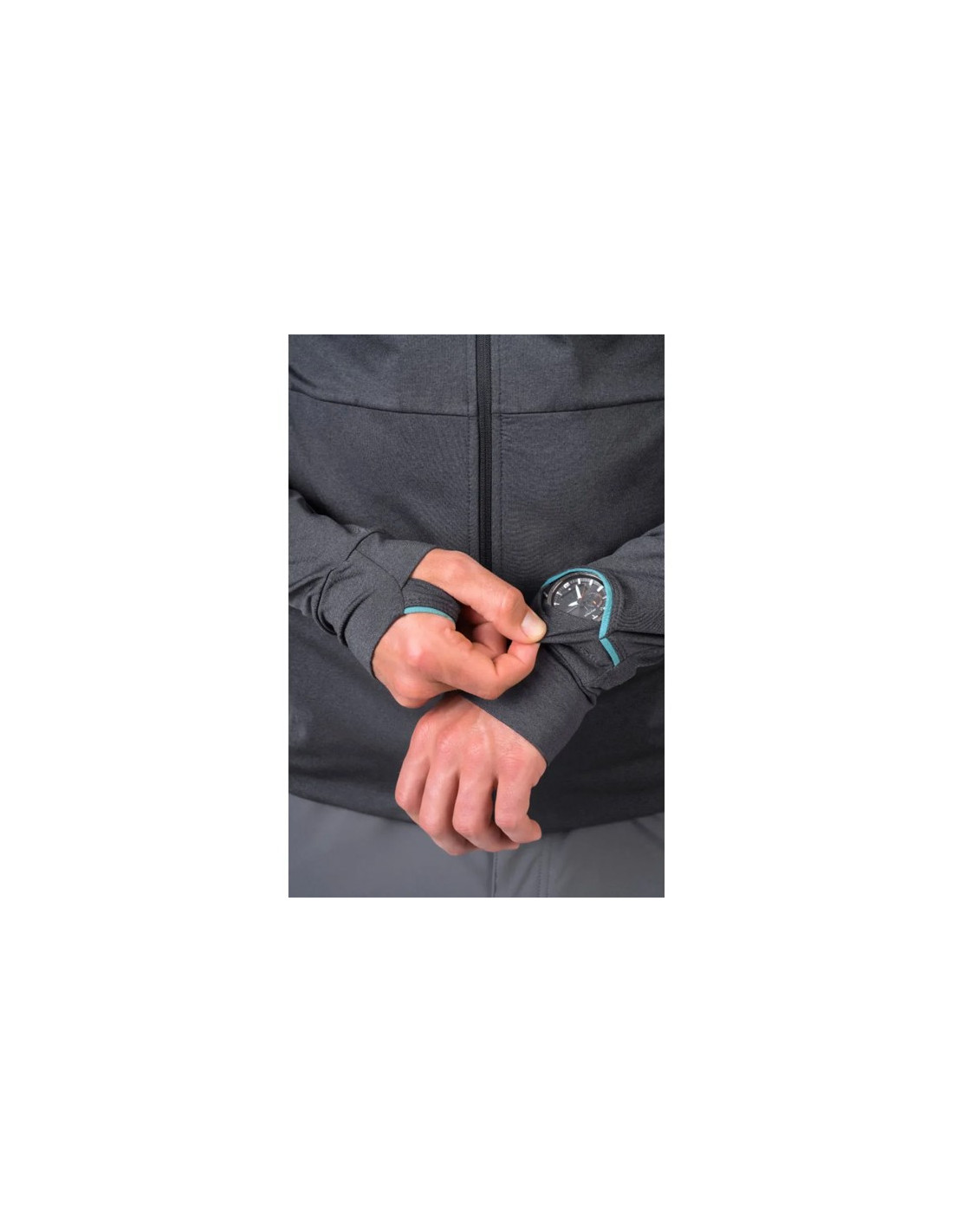 Dispone de una cremallera larga invertida con cuello alto y protector de barbilla. La capucha está ribeteada con un elástico para un ajuste óptimo. Las mangas preformadas incorporan orificios para los pulgares y puños elásticos. Además, cuenta con una práctica abertura para el reloj en la manga derecha.